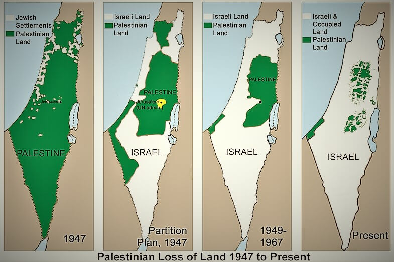 সূত্রঃ ইন্টারনেট। এই ম্যাপগুলির যথার্থতা নিয়ে মতবিরোধ রয়েছে। কিন্তু মূল উদ্দেশ্য হল ইজরায়েল কর্তৃক প্যালেস্তিনিয় জমিদখল-এর সাধারণ প্রবণতা তুলে ধরা।