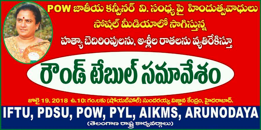 Flyer for the 19th July Round Table meeting to protest the threats to V Sandhya
