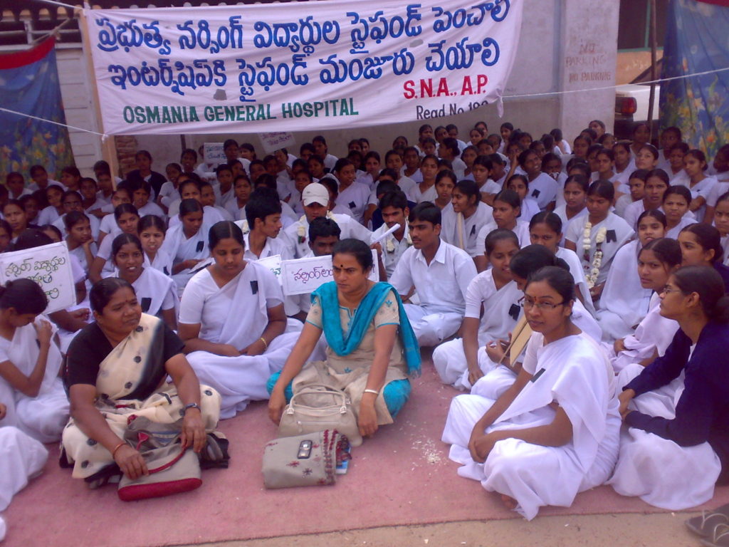 File photo. V Sandhya protesting with Government nursing school students, demanding an increase in student stipends, and calling for stipends for internships. Source: V. Sandhya