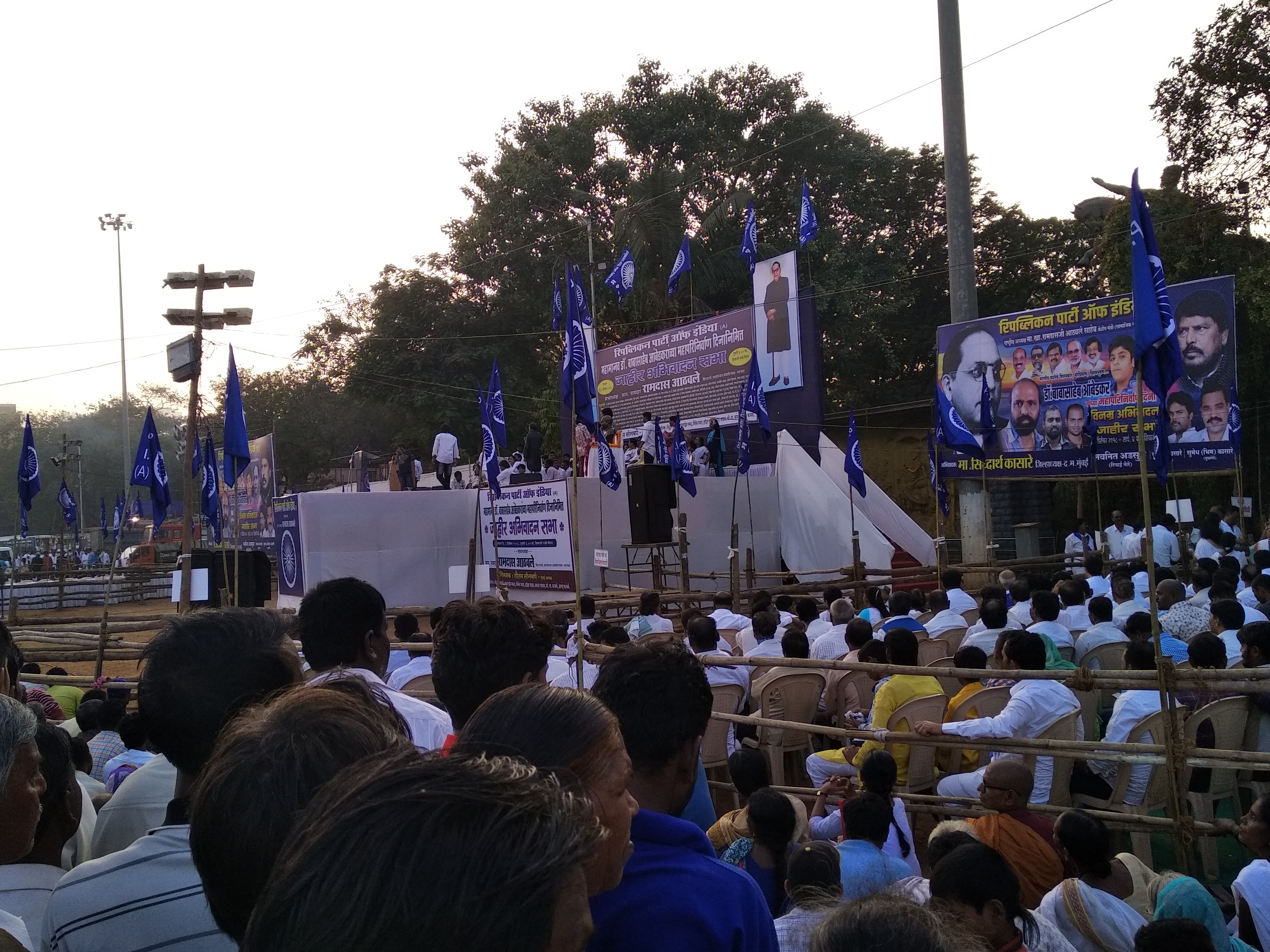 Several political parties had put up giant stages and big tents for their own leaders. The biggest presence clearly was that of the Republican Party of India (Athawale), a long-time ally of the BJP. Sharad Pawar’s Nationalist Congress Party (NCP) was also present. So was the Bahujan Samaj Party. Bhim Army Maharashtra also had a stall.