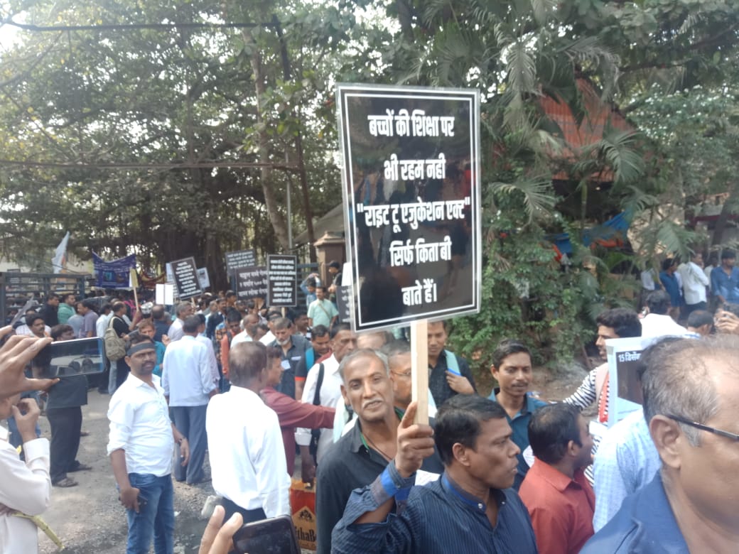 Mahul residents demand Right to Education for their children. Several children have been sitting in the dharna for 50 days now, demanding proper rehabilitation and decrying the attack on child rights and right to education.
