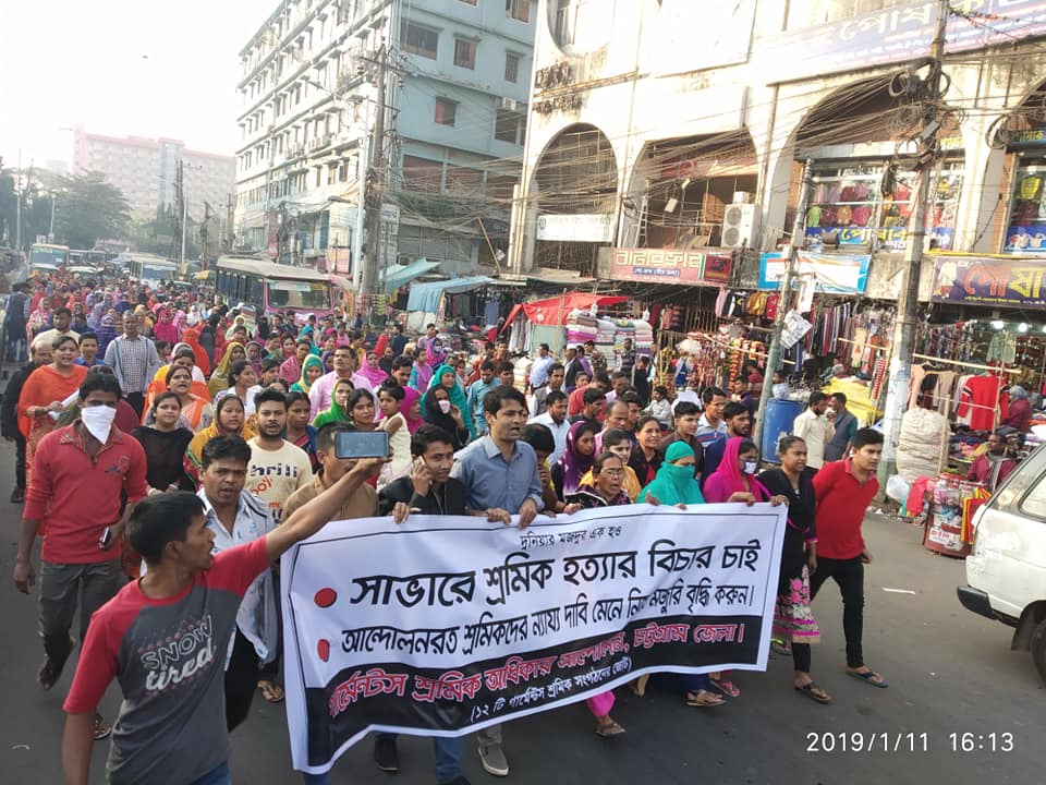 Garment workers in Chittagong take out demonstrations against the killing of worker in Savar. Photo: Mejbah Uddin. Source: Facebook.