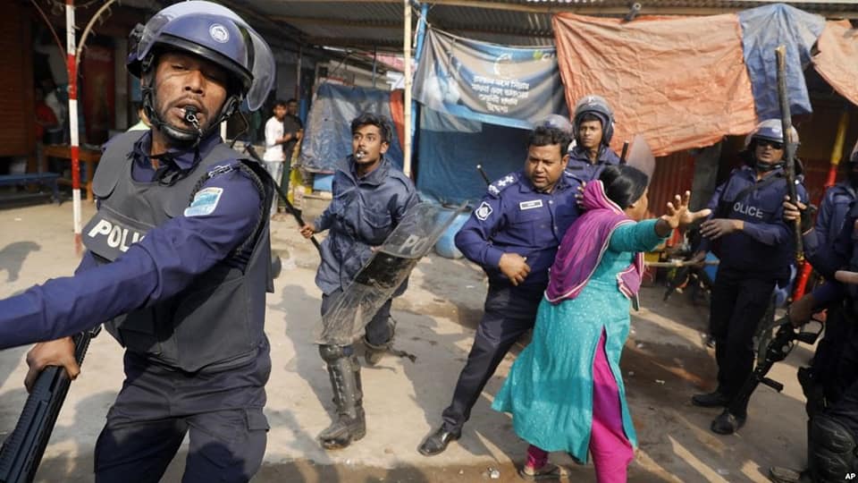 Police attempt to stop the demonstrating garment workers. Mirpur, Dhaka on Saturday, January 12, 2019. Courtesy: Dhaka Tribune