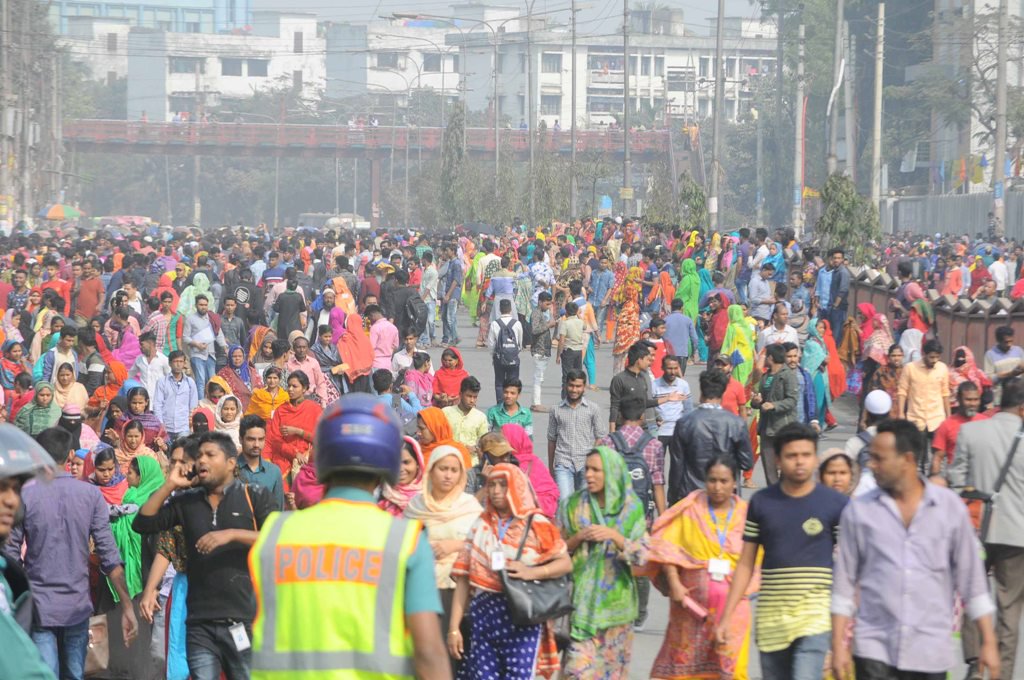 Soon the unrest spread to workers in one factory after the other, forcing shutdown of at least 70 factories at Ashulia and in Gazipur and Narayanganj on December 13. Bangladesh Garment Manufacturers and Exporters Association (BGMEA) President Siddiqur Rahman alleged that “a vested quarter was instigating workers for creating a labour unrest in some 50 apparel factories in Gazipur and Ashulia in order to destabilise the situation ahead of the December 30 general elections.” The BGMEA President asked law enforcement agencies to bring ‘those people to book’. Angry workers started blocking the roads and obstructing traffic for hours.
