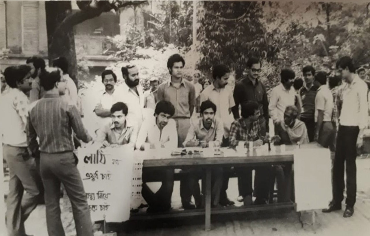 Cover Image : Junior Doctors running a parallel OPD during their movement in the early eighties. Image source : Subhendu Dasgupta.