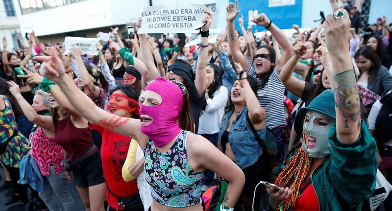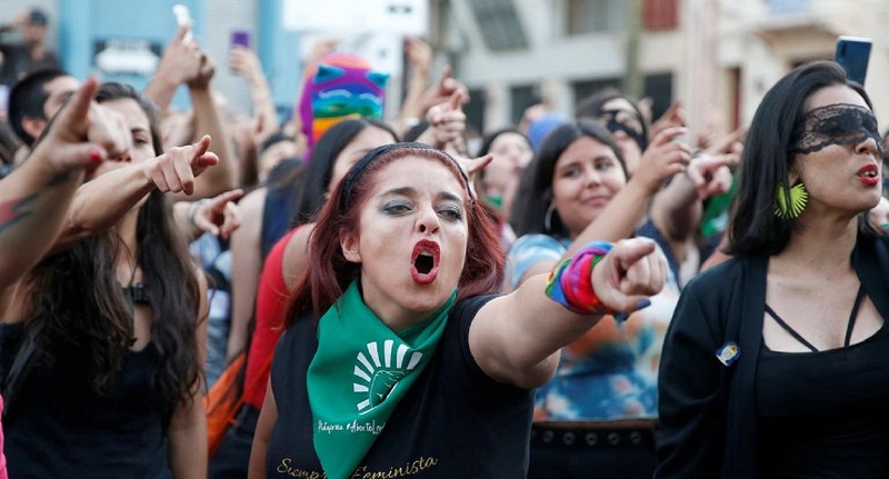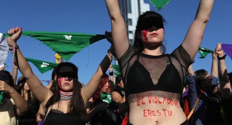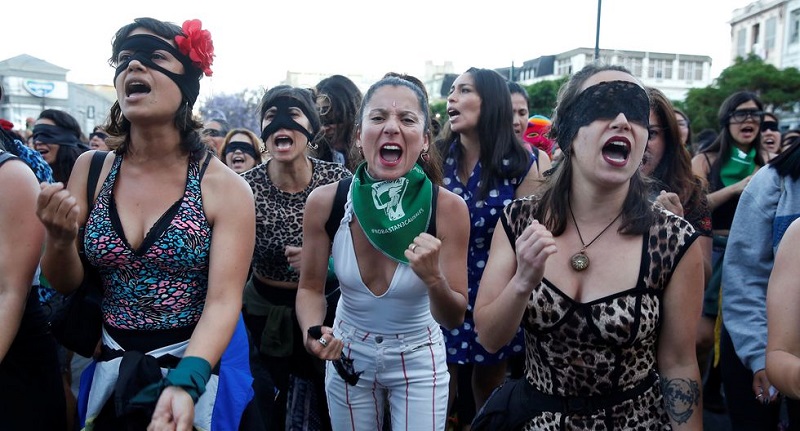A group of Chilean feminist protesting gender violence, amidst the social upheaval that has shaken the country.