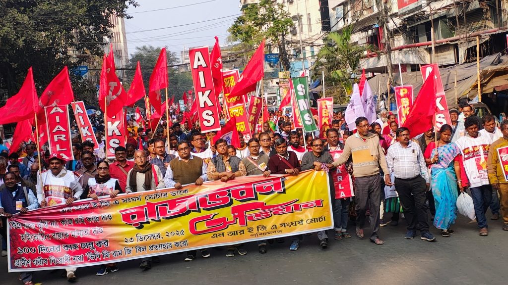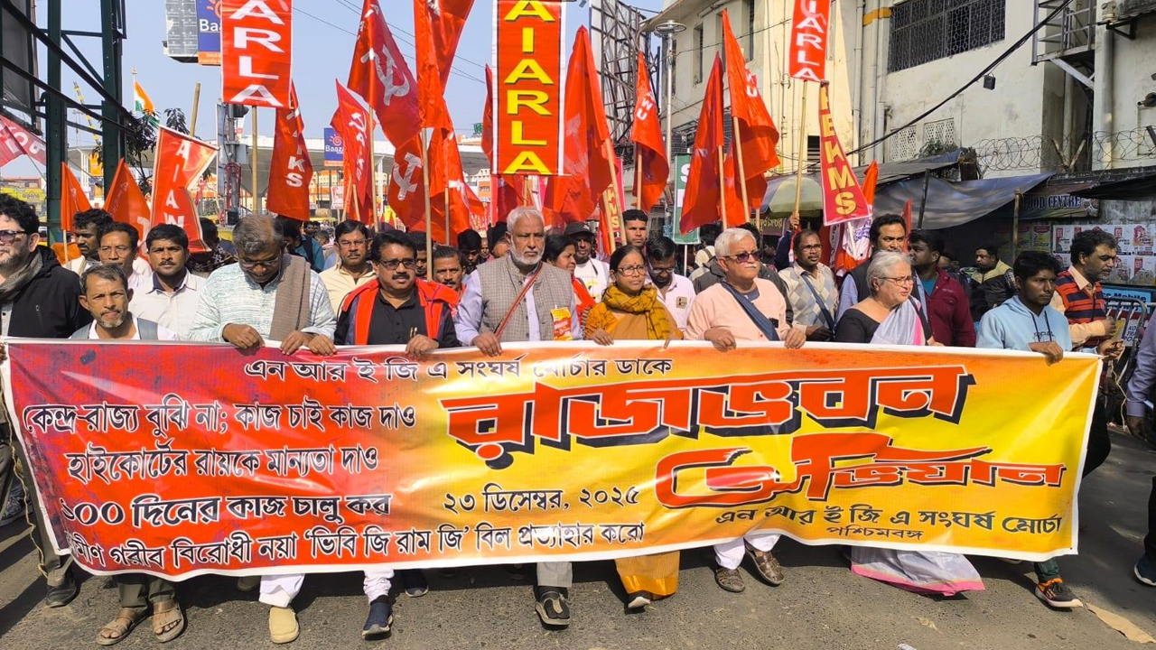 Opposition to the VB–G–RAM–G Act intensified as more than 10,000 rural agricultural workers marched to Raj Bhavan in Kolkata. Trade unions simultaneously called for a nationwide push to openly reject the law in upcoming Gram Sabhas and demand for a restoration of MGNREGA.