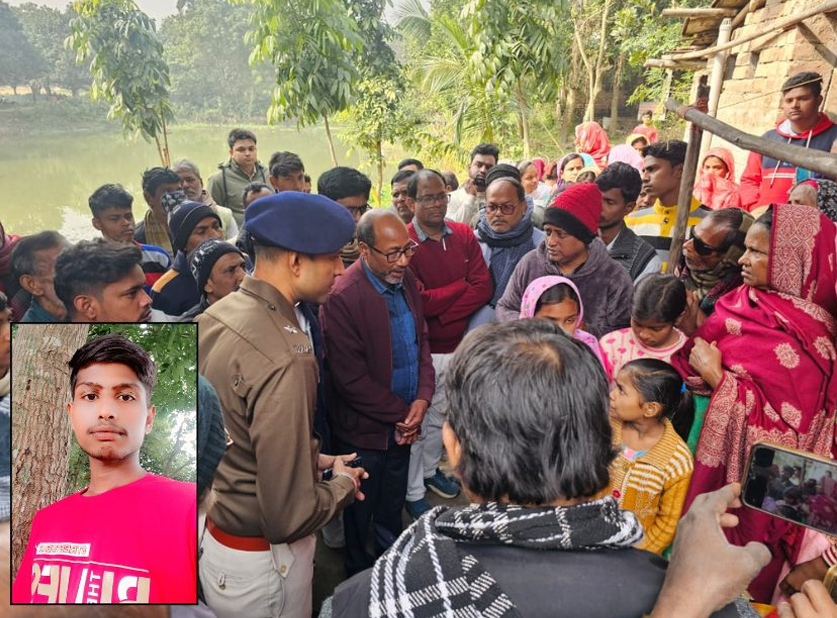 Police speak to Juel Rana’s family in Chakbahadurpur village in Suti, Murshidabad, West Bengal, on December 25. Inset: 20-year-old Sheikh Juel Rana | Photo: Special arrangements