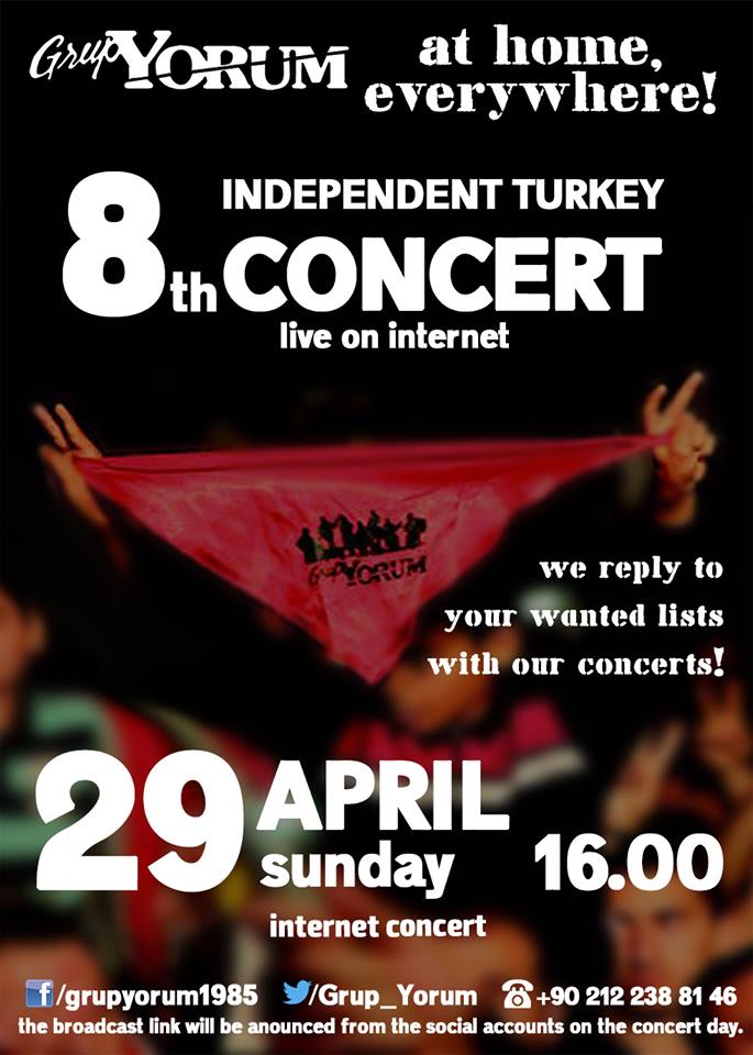 গত সাত বছর এই সময় গ্রুপ ইওরুম ‘মুক্ত তুর্কি’ নাম দিয়ে বিশাল কনসার্টের আয়োজন করেছে। এবছর দমনের মুখে তা করা যায়নি। কিন্তু গান থামেনি। ২৯ এপ্রিল সারা পৃথিবী শুনেছে ইন্টারনেটে ‘অষ্টম মুক্ত তুর্কি লাইভ কনসার্ট’। এখন ইউটিউবে তা শুনতে পাওয়া যাবে: