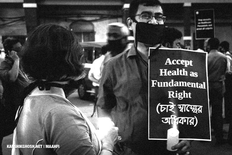 ২০১৮-র ১১ই মে মেডিকাল কলেজ থেকে বৌবাজার-সেন্ট্রাল এভিনিউর ক্রসিং অবধি পথ চলল পাঁচশ মানুষের এক মিছিল। বিকাল ৬টায় মিছিল শুরুর আগেই আকাশ কালো করে ঝড় উঠেছিল, বৃষ্টি পড়ছিল। কিন্তু এসোশিয়েসন অফ হেলথ সার্ভিস ডক্টরস, ডক্টরস ফর ডেমোক্রাসি, ডক্টরস ফর পেশেন্টস, শ্রমজীবী স্বাস্থ্য উদ্যোগ, ওয়েস্ট বেঙ্গল ডেন্টাল সার্ভিস এসোশিয়েসন এবং ওয়েস্ট বেঙ্গল ডক্টরস ফোরামের ডাকে সরকারী-বেসরকারী ডাক্তার ও তাঁদের পরিবারের মানুষদের লক্ষ্য থেকে টলাতে পারেনি প্রকৃতির ভ্রূকুটি। মুখে কালো কাপড় বেঁধে, হাতে মোমবাতি নিয়ে তাঁরা লালবাজার চলেছিলেন রাজ্য পুলিশের ডিজি-কে ডেপুটেশন দিতে। ২রা এপ্রিল নবান্নে ডাক্তার সংগঠনগুলির বৈঠকে মুখ্যমন্ত্রী/স্বাস্থ্যমন্ত্রী প্রতিশ্রুতি দিয়েছিলেন—ডাক্তার ও চিকিৎসাকর্মীদের সুরক্ষার ব্যবস্থা করা হবে, আক্রমণকারীদের কঠোর শাস্তি দেওয়া হবে। অথচ ২রা এপ্রিল থেকে ১০ই মে রাজ্যের নানা প্রান্তে ঘটেছে ১৪টি আক্রমণের ঘটনা। পুরুলিয়ার বড়াবাজারে আক্রমণকারীদের নেতা শাসকদলের পঞ্চায়েত নির্বাচন-প্রার্থী। পুলিশ কোনো ব্যবস্থা নেয়নি। তাই এই ডেপুটেশন। মিছিলকে আটকে দেওয়া হলো ১৪৪ধারার অজুহাতে, ডিজি বা কোন উচ্চপদস্থ অধিকারী কথা বলার সৌজন্যটুকুও দেখালেন না, ভবানী ভবনে মেমোরেন্ডাম রিসিভ করিয়ে আনা হলো। যাওয়ার পথে মিছিল ছিল নীরব, হাতে প্ল্যাকার্ড-ব্যানার—ডাক্তারদের ওপর আক্রমণ বন্ধ হোক, সরকারী হাসপাতালের পরিকাঠামো উন্নত করা হোক, সরকার নাগরিকের স্বাস্থ্যের অধিকারকে স্বীকার করে নিক। ফেরার পথে ক্ষুব্ধ মিছিল স্লোগান তুলল—স্বাস্থ্য কোনো ভিক্ষা নয়, স্বাস্থ্য আমার অধিকার।