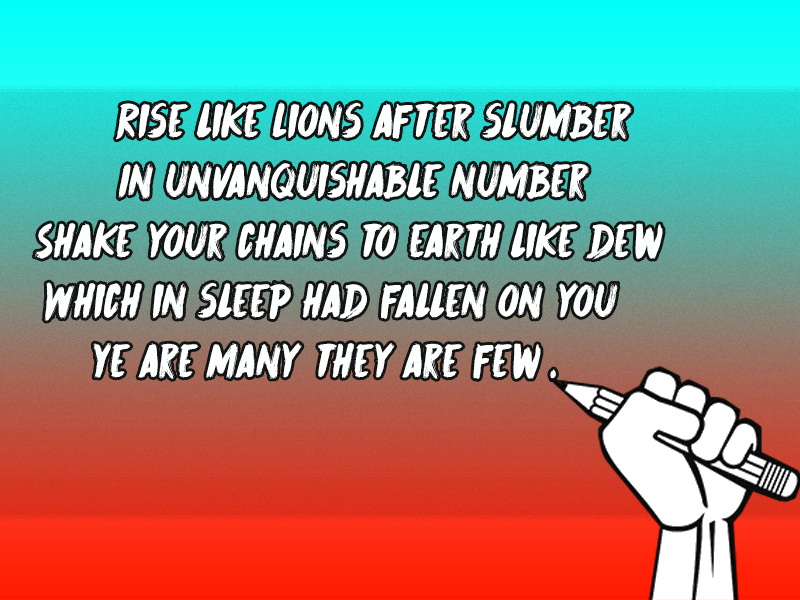 ১৮২১ সালে লেখা একটি প্রবন্ধ ‘আ ডিফেন্স অফ পোয়েট্রি’-তে শেলি বলেছিলেন: “poets are the unacknowledged legislators of the world”। রোম্যান্টিক কাব্যদর্শন সঞ্জাত শেলির এই উক্তি কিছুটা অতিকথন নিশ্চই। সাহিত্যের যে অসীম ক্ষমতা তাকে সমাজ গঠনে বা তার কল্যাণসাধনের দিকনির্দেশনায় ব্যবহার করা যেতে পারে – এমনটাই বলতে চেয়েছিলেন তিনি। কবিতা, তাঁর মতে “The most unfailing herald, companion, or follower of the awakening of a great people to work a beneficial change in opinion or institution …” আর কবিরা হলেন ভবিষ্যৎদ্রষ্টা এবং ভবিষ্যতের রূপকার: “Poets are… the mirrors of the gigantic shadows which futurity casts upon the present”। ইংরাজিতে Poet শব্দটি এসেছে গ্রীক Poiein থেকে। যার অর্থ সৃষ্টি করা। অর্থাৎ, কবি (Poet) শব্দের আদি অর্থ সৃষ্টিকর্তা।শেলি কবিদের মূল্যায়নে এই আদি অর্থের ওপর জোর দিচ্ছেন। কবিমাত্রেই কল্পলোকের বাসিন্দা – এই বহুল প্রচলিত মিথটির মূলে আঘাত করছেন। তিনি কবিদের সমাজ গঠনের ও সংস্কারের সক্রিয় কারিগর হিসাবে দেখছেন। উল্লেখ্য, এই প্রবন্ধ রচনার দু বছর আগেই, ১৮১৯ সালে, শাসকের মদতে সংঘটিত পিটারলু হত্যাকান্ডের প্রেক্ষিতে, অহিংস প্রতিবাদের ডাক দিয়ে শেলি লিখেছেন ‘দ্য মাস্ক অফ অ্যানার্কি’ নামক একটি পুরোদস্তুর রাজনৈতিক কবিতা। অনেক সমালোচকের মতে যা ইংরাজি ভাষায় রচিত শ্রেষ্ঠ রাজনৈতিক কবিতা: