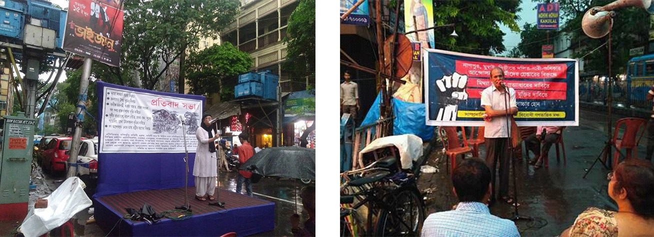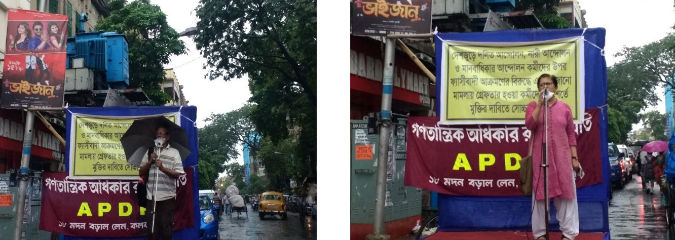 The following day a large collection of organisations came together for another protest regarding the arrests including APDR, BMC, CRPP, AIPF, WSS, BSN, ACRA, CDRO, CPDRS, DTDH, WBFGSMR, SSM, SSS, USDF, Narichetona, Naya Istehar, Sankskritik SamaSamay, Samprodayikota o Moulobad birodhi Nagarik Udyog.