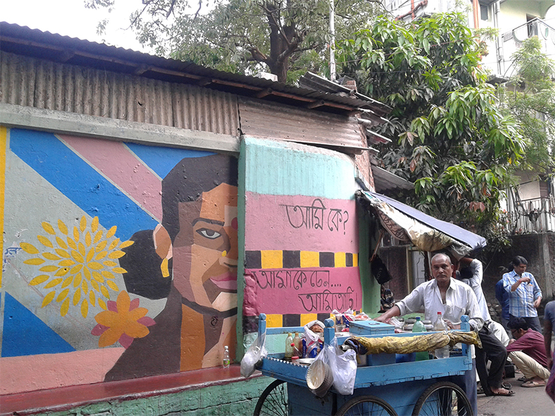 এক অলস মেঘলা দুপুরে কলকাতার সোনাগাছি এলাকায় যখন গিয়ে পৌঁছলাম তখন কালো মেঘের মাঝখানে উজ্জ্বল রঙের ছবি আঁকা বাড়িটি যেন কোনও এক নতুন গল্প শোনাবার জন্য উদ্ধত ভঙ্গিতে মাথা উঁচু করে দাঁড়িয়েছিল। এই কয়েক মাসে সোনাগাছির সঙ্গে অঙ্গাঙ্গীভাবে জুড়ে গেছে এই নতুন শিল্পের পরিচিতি। যৌনকর্মীদের পাড়া বলে পরিচিত, অধিকার আন্দোলনের কেন্দ্র হিসাবে পরিচিত, যৌনকর্মীদের দুর্গাপুজোর জন্য পরিচিত, সাংস্কৃতিক নানা অনুষ্ঠানের জন্য পরিচিত সোনাগাছির শরীরে জেগে ওঠা এই ম্যুরাল তাকে সাজিয়ে তুলেছে। যা অবশ্যই তার নিজস্ব পরিচিতিকেই আরও স্পর্ধিত করেছে। শিল্প যখন ভাষা হয়ে ওঠে তখন তা কতটা শক্তিশালী হয়ে উঠতে পারে, তারই সাক্ষী হয়ে উঠেছে এই শিল্পকর্মটি। কলকাতার বুকে এমন কাজ আশা জাগায়।