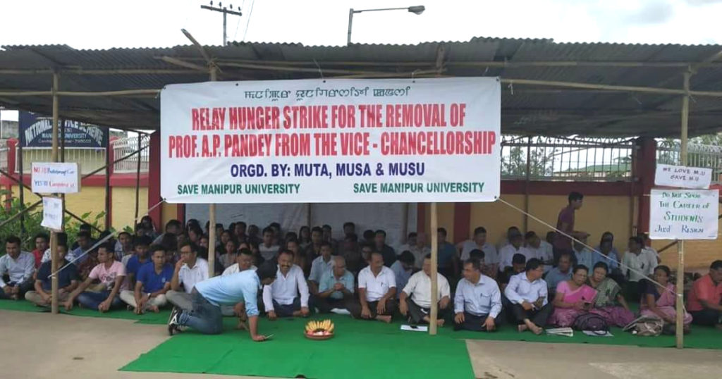 The struggle in Manipur University has been continuing for more than fifty days now. Manipur University Students’ Union (MUSU) has demanded the removal of VC Aadya Prasad Pandey. He is accused of not performing the duties assigned to his office properly, of financial irregularities, irregularities in appointment, and saffronisation of the University. Michael Samjetsabam writes about the struggle in Manipur and lessons that students’ struggles in mainland India can learn from it. The main attempt here is to understand in particular, the contradiction between the University students and Hindutva fascist designs. As discussions regarding the VC’s political affiliation pick up in Manipur, here is a look at the allegation that the VC is attempting to saffronize the University.