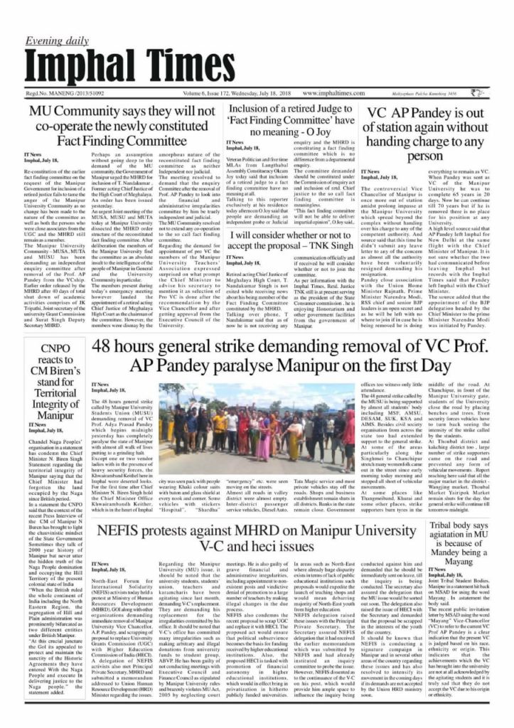 MU Community declares non-cooperation with Fact-finding committee. Courtesy: Imphal Times