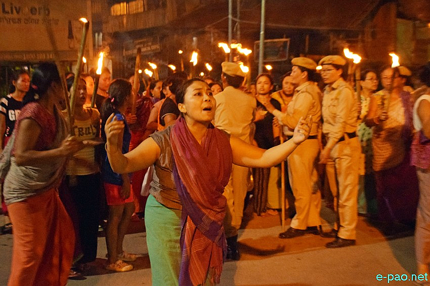 Women’s torch rally demanding resignation of the VC meets with heavy police deployments. 19th July. Source: e-pao.net. Photo credit: Shankar Khangembam