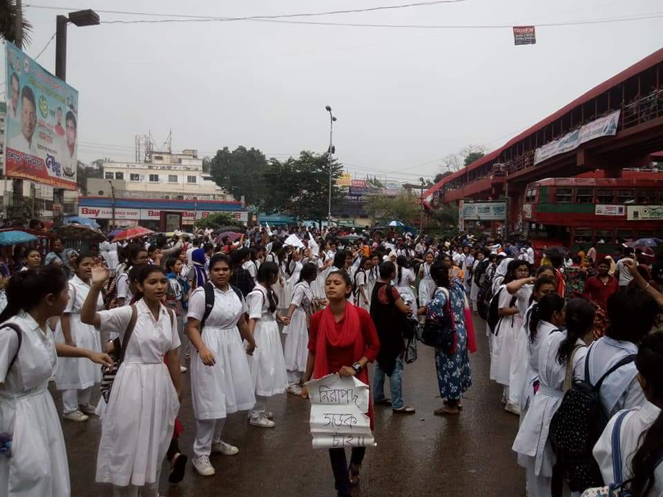 নিরাপদ সড়কের দাবিতে স্কুলের মেয়েরা
