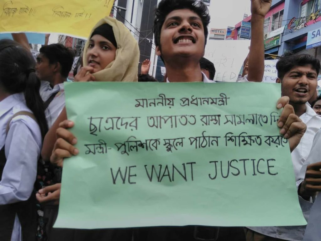 সড়ক দুর্ঘটনা, পরিবহন দপ্তরের বেহাল দশা, এ নিয়ে সত্যিই সংবাদমাধ্যমে অসংখ্য রিপোর্ট প্রকাশিত হয়, তদন্তমূলক তথ্যানুসন্ধান চলে, সরকার-প্রশাসন আর সাধারণ মানুষের মধ্যে চাপান-উতোর চলতে থাকে, কিন্তু আদপে কাজের কাজ কিছুই হয় না। পথ দুর্ঘটনায় প্রাণহানি, আহত হওয়া এসবে আমরা আজকাল অভ্যস্ত হয়ে গেছি। যাদের বাড়িতে দুর্ঘটনা ঘটছে তারা ছাড়া এগুলি সংবাদমাধ্যম থেকে জানা ঘটনা মাত্র, আমাদের কাছে। কিন্তু সড়ক দুর্ঘটনাকে কেন্দ্র করে একটি দেশ যে ছাত্র-আন্দোলন, কিশোর-আন্দোলনকে এহেন বিরাট রূপ দিতে পারে, এ কথা হয়তো ভাবতেও পারিনি। কারণ আমরা যে ছাত্র-আন্দোলনের সঙ্গে পরিচিত, তার সঙ্গে এর যে কোনও মিলই নেই। রাষ্ট্র, সরকার, প্রশাসনের বিরূদ্ধে ছাত্র-আন্দোলনকে এক নতুন চেহারা দিল বাংলাদেশ।