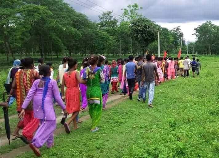 Thus, in 2017 once the interim agreement expired, the demand for minimum wages made a comeback. In March 2018, the Government unilaterally announced an increase of ₹ 17, together with an announcement that the arrears for January to March 2018 would be paid to the workers as per the new rate. The question here is what happened to the arrears from March 2017 (after the expiry of the interim agreement) to December 2017? We know that this money has been pocketed by the owners. But that is not all. Wage agreements are renewed for the tea gardens every three years, according to which typically the wages are supposed to be raised on a yearly basis. However this time, though the latest agreement was signed on March 2017 that led to an increase of ₹ 17, right now we have reached August 2018, and the workers haven’t been offered an acceptable rise in wages yet though it has been more than a year now since the last revision. During the recent Panchayat elections in the state, the ruling party tried convincing the workers that the raise in PDS allocation by 9 rupees should be considered in effect a wage raise, apparently amounting to the current wage being effectively (150+9=) ₹ 159.