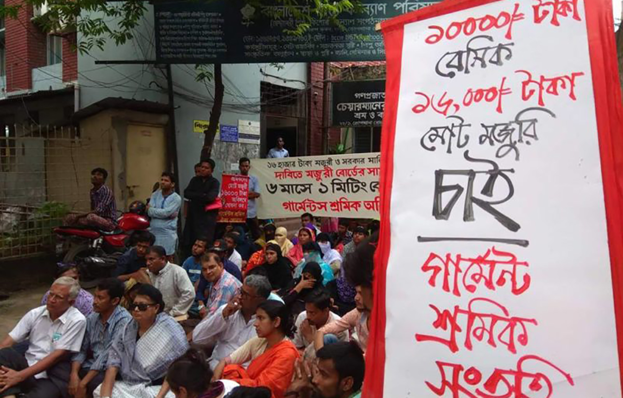 In January this year, the government constituted a wage board for RMG sector after successive strikes by workers with representation from the owners, workers, a neutral observer and the official members of the wage board. The board was given a deadline of 6 months to come up with a conclusion on the minimum wage which ended on 14th July. Meanwhile, only three meetings have taken place without the board reaching any conclusion. Labour organisations all over the country had unanimously decided on the proposal of 16,000 takas as minimum wage. The workers’ representative, Shamshun Nahar Bhuiyan, women affairs secretary with the Jatiyo Sromik League, however pitched for 12,020 takas arguing that her membership with the party in the government binds her to follow certain protocols. On the other hand, the owners’ representative BGMEA pitched for 6,360 takas citing the strict competition in the export sector.