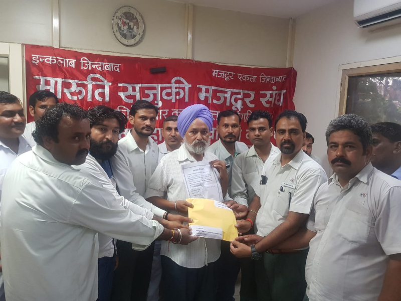 On 22nd August, the Maruti Udyog Kamgar Union announced a financial support to the tune of Rs. 45,50,000 for the families of the 13 Maruti workers who are currently serving life sentence in jail. These workers, who actively took part in the organized struggle for rights of the workers against the company, were sentenced to Life Imprisonment in relation to the unfortunate event of the death of Ashwin Kumar, General Manager, HR Department in Maruti Suzuki Manesar plant on 18th July 2012. The amount raised through workers voluntary contribution was handed over to the families of these 13 workers on 23rd August at the workers’ union office, in the factory campus in Sector 18, Old Delhi Road.