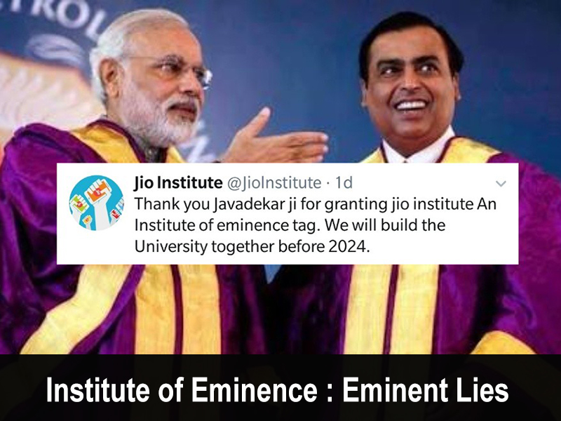 Institutes of Eminence demonstrate yet another scam designed by the BJP government that corporatizes education, implements unscientific ranking system presenting false data, enforces an increasing number of bad educational loans, and plays cruel games with the future of the Indian youth. A GroundXero report.