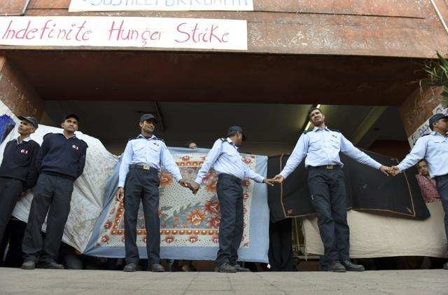 The salaries of the G4S security guards working in the JNU campus got drastically reduced by Rs. 4000-5000. While the lower ranking guards, who sit outside the hostels, centers and parking lots earlier earned Rs.13500-15000 per month, they have been transferred only a sum of Rs. 9000-10000 this month. Though no written explanation or prior notice has been given to the guards, it is heard that this cut has taken place due to the judgment passed by the Delhi High Court on August 4, 2018, scrapping the 37% hike in minimum wages by the Delhi government. While workers all over the country are struggling for a decent minimum wage, this judgment has come across as a highly anti-worker and anti-poor step.