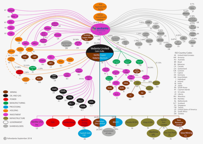 The report includes a detailed diagram of Vedanta’s corporate structure, as it has evolved over the years, revealing the disproportionate number of shell companies registered in various tax havens, reflecting their opaqueness, contrary to their claim of being transparent.