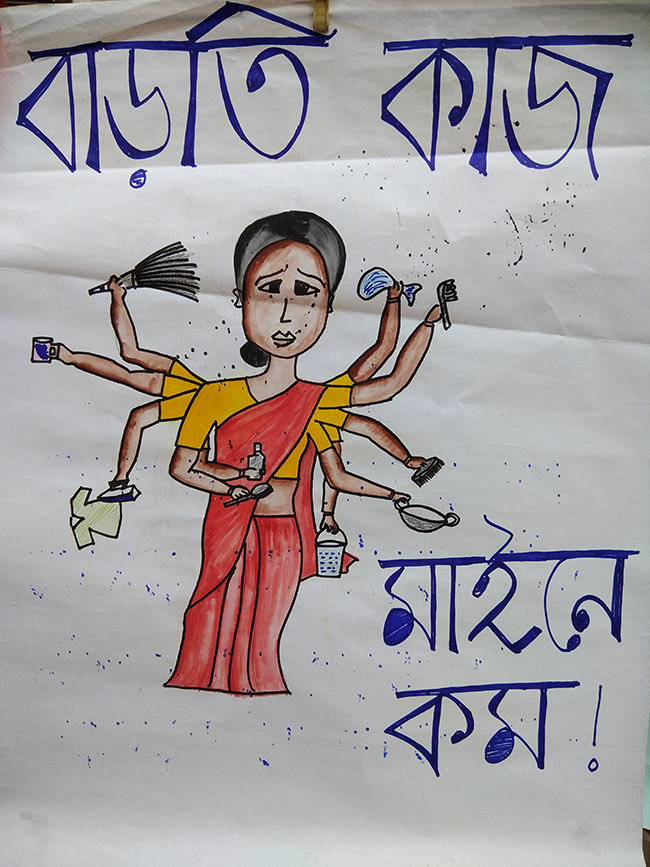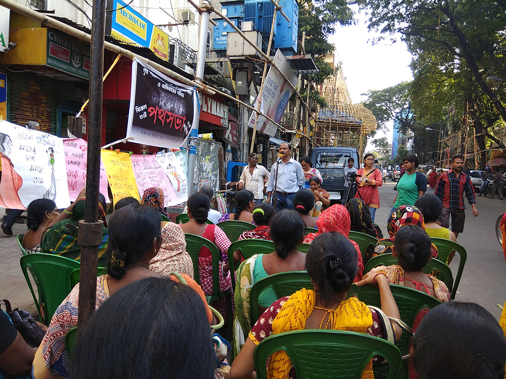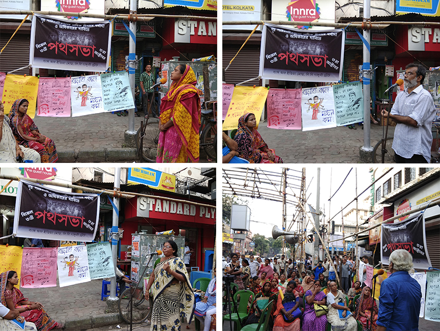 বিধাননগর বাসন্তী কলোনির চণ্ডীদি মনে করিয়ে দিলেন ২০১৬ সালে মেদিনীপুরের দাঁতন থেকে দমদমের একটি বাড়িতে সারাদিন থাকা খাওয়ার পরিবর্তে কাজ করতে আসা ১৪ বছরের বন্দনা মহাকুরের ঘটনা এবং তাতে পুলিশের ন্যক্কারজনক ভুমিকার কথা। ১৪ বছরের মেয়েটি যে কাজে ঢোকার পর থেকে কাজের বাড়ি থেকে ছুটি নিয়ে বাড়ি যাবার সুযোগটুকু পাইনি, তার উপর দেড় লাখ টাকা দামের গয়না চুরির অভিযোগ আনে বাড়ির মালিক। পুলিশে অভিযোগ জানালেও বন্দনা আদৌ চুরি করেছে কিনা তা নিয়ে বাড়ির মালিক বা পুলিশ কেউই মাথা ঘামায়নি। বাড়ির মালিকের মূল উদ্দেশ্য ছিল বন্দনাকে সারাজীবনের জন্য নিজের বাড়িতে বিনা পারিশ্রমিকে খাটানোর। তাই বন্দনার বাড়ির লোক ওকে ছাড়িয়ে আনার জন্য পুলিশের কাছে সাহায্য চাইলে পুলিশ ফিরিয়ে দেয়। শেষ পর্যন্ত বন্দনার দিদি যে বস্তিতে থাকে সেই বাসন্তী কলোনির লোকজন এবং গণ আন্দোলনের কিছু কর্মী একসাথে থানায় গিয়ে চাপ সৃষ্টি করলে তবেই পুলিশ বাধ্য হয় বন্দনাকে ছাড়িয়ে আনতে। এই ঘটনায় পুলিশ যে বন্দনার কাজের বাড়ির থেকে ঘুষ নিয়ে বন্দনার বাড়ির লোকজনদের হেনস্থা করে। আধপেটা খাওয়া, আতঙ্কিত বন্দনাকে শেষমেশ উদ্ধার করা হয়। চণ্ডীদি পুলিশের উদ্দেশ্যে দাবি জানালেন প্রতিবাদী সভা থেকে, “যদি মনেই হয় আমরা চোর, চুরি করি; তাহলে পুজোর সাতদিন আমাদের ছুটির ব্যবস্থা করে দিন।” টিটাগড় থেকে আসা মাফুজাদি র কথায় উঠে আসে কীভাবে সামান্য মাটির প্রদীপ ভাঙার অজুহাতে রাতারাতি কাজ থেকে ছাড়িয়ে দেয় তারই পরিচিত অন্য এক গৃহ পরিচারিকাকে। গৃহ পরিচারিকদের কাজকে অসম্মানজনক কাজ হিসাবে দেখার বিরুদ্ধে স্পষ্ট ভাষায় মাফুজাদি বলেন, “হ্যাঁ আমরা বাড়ির কাজ করি, কিন্তু এটা কোনোভাবেই নিচু কাজ নয়”। এছাড়াও আজকের সভায় বক্তব্য রেখেছেন গণ আন্দোলনের বিভিন্ন কর্মী মুনমুন বিশ্বাস, তপতী চ্যাটার্জি, রঞ্জিত শূর, কুশল দেবনাথ, আলতাফ আহমেদ প্রমুখরা। গানের সুরে লড়াইয়ের কথা বলেছেন প্রদীপ রায়, শ্যামল গায়েন ও নিশান চ্যাটার্জি। আজকের পথসভার আলোচনায় বারবার উঠে আসে আসলে এই পুলিশি ব্যবস্থা, নিরাপত্তার প্রয়োজনীয়তা ঠিক কাদের জন্য। এই ব্যবস্থা যে আদৌ খেটে খাওয়া মানুষের কল্যাণের জন্য নয় তা সভায় উপস্থিত গৃহপরিচারিকদের বক্তব্যে বারংবার হাজির হয়েছে। তাঁরা নিজেরাই জানাচ্ছিলেন তাদের উপলব্ধির কথা, যে সংগঠিত হয়ে প্রতিবাদই তাদের উপর হয়ে চলা অমানবিক ব্যবহার, অসম্মানকে রুখে দেবার একমাত্র পথ।