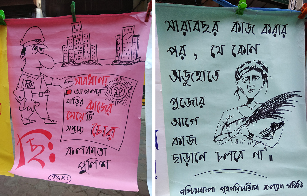 গত ২৭ সেপ্টেম্বর বিভিন্ন সংবাদপত্রে প্রকাশিত পঞ্চসায়র থানা এলাকায় গৃহকর্ত্রী দ্বারা কিশোরী পরিচারিকা নিগ্রহের ঘটনাটি পড়ে শিউরে উঠতে হয়েছিল। রুটি ঠিক মত ফোলেনি, এই অপরাধে রুটি স্যাঁকার গরম লোহার নেট দিয়ে গায়ে ছ্যাঁকা দিয়ে শাস্তি দিয়েছে বাড়ির মালকিন। যদিও এই ঘটনা কোন বিচ্ছিন্ন ঘটনা নয়। তথ্যচিত্র তৈরির খাতিরে সাক্ষাৎকার নিতে গিয়ে, কখনো খবরের কাগজে ছাপা খবরের সূত্র ধরে ঘটনার অনুসন্ধান করতে গিয়ে কিম্বা গৃহপরিচারিকাদের সংগঠিত হবার কাজে জড়িত থাকার দরুন এই ধরনের কমবেশি নৃশংস ঘটনা ঝুলিতে কম নয়। এর অধিকাংশের ক্ষেত্রেই নিগৃহীতা পরিচারিকা কোন অভিযোগ দায়ের তো দূরে থাক, পেটের দায়ে নুন্যতম প্রতিবাদটুকু করে উঠতে পারেনি। সেদিনই ফেসবুক পোস্ট মারফত কলকাতা পুলিশ কতৃক প্রকাশিত ‘জনসাধারনের উদ্দেশ্যে কলকাতা পুলিশের আবেদন’ শীর্ষক একটি লিফলেট হাতে আসে। আসন্ন উৎসবের মরসুমের জন্য সতর্ক হতে আবেদন জানানো হয়েছে এই লিফলেটে। যার ৮ থেকে ১১ নং সতর্ক বার্তায় গৃহপরিচারিকদের সম্ভাব্য চোর হিসাবে উল্লেখ করে তাদের থেকে সাবধান থাকতে বলা হয়েছে। লিফলেটের ছবি সহ পোস্টগুলি ভাইরাল হতেই গণ আন্দোলনের সাথে যুক্ত বিভিন্ন সংগঠন ও ব্যক্তিবর্গ এর বিরুদ্ধে প্রতিক্রিয়া জানায়। কলকাতা পুলিশকে উদ্দেশ্য করে একটি চিঠিতে এই বক্তব্যের বিরুদ্ধে স্বাক্ষর সংগ্রহের প্রক্রিয়া চলে। পশ্চিমবাংলা গৃহপরিচারিকা কল্যাণ সমিতির পক্ষ থেকে কলকাতা পুলিশকে একটি মেল করা হয়, যার কোন উত্তর এই মুহূর্ত অব্দি এসে পৌঁছায়নি। গত সোমবার বিভিন্ন সংগঠন ও ব্যক্তিবর্গের দ্বারা স্বাক্ষরিত চিঠিটি লালবাজারে জমা দিতে গেলে, সেই চিঠি গ্রহণ করা হয়নি। অথচ সোশ্যাল মিডিয়ায় তীব্র প্রতিক্রিয়া শুরু হবার পর থেকেই কলকাতা পুলিশ রঞ্জিত শূর সহ বিভিন্ন সমাজকর্মীকে ফোন করে লিফলেট সঙ্ক্রান্ত পোস্টটি ফেসবুক থেকে সরিয়ে নিতে বলে এবং দাবি করে ওটি তারা প্রকাশ করেনি। অথচ যখনই বিধিসম্মতভাবে একই বক্তব্য পেশ করতে বলা হয়েছে তার কোন প্রত্যুত্তর মেলেনি। গৃহশ্রমিকদেরকে উদ্দেশ্য করে আপত্তিকর লিফলেট প্রকাশের প্রতিবাদে আজ বি বি গাঙ্গুলি স্ট্রিট, শিয়ালদহ, ব্যাঙ্ক অফ ইন্ডিয়ার সামনে এক পথসভার আয়োজন করা হয়েছিল। গণ আন্দোলনের সঙ্গে যুক্ত বিভিন্ন সংগঠনের সাথে যৌথভাবে পশ্চিমবাংলা গৃহপরিচারিকা কল্যাণ সমিতি এই পথসভা আয়োজন করে।