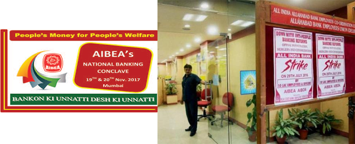 Flyer for an AIBEA conclave last year ; An empty bank during a strike that AIBEA was part of organising; Source : PTI