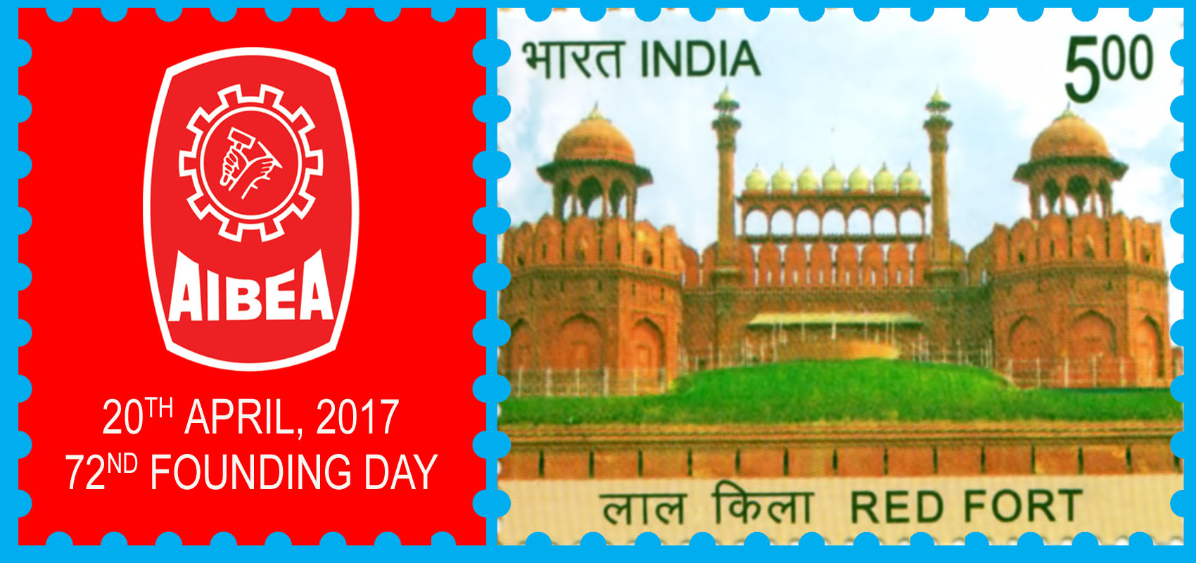 A special stamp in honour of AIBEA. Source: http://www.wftucentral.org/aibea-india-5-speacial-stamps-released-on-the-founding-day-of-aibea/
