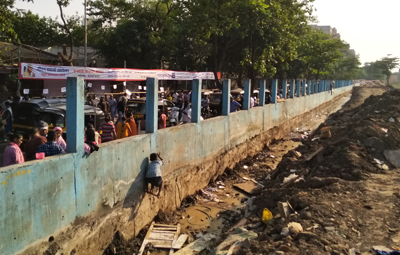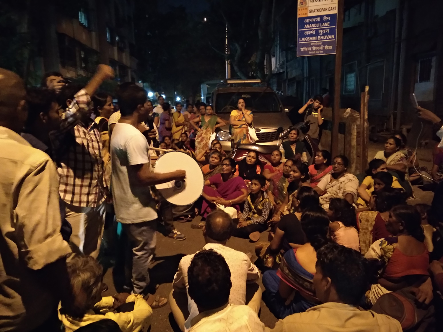 The government was supposed to take a decision on relocation before 1st of October. But the residents of Mahul have not received any decision or intimation from the government till date. Agitated by Government’s callous attitude, the Mahul residents have decided to leave the area, and have for now occupied a footpath in front of the land where they had previously resided, in order to stage an indefinite dharna by the name ‘Jeevan Bachao Andolan’ at Ambedkar Nagar, Vidyavihar since 28th October, 2018. The dharna site was visited by activist Medha Patkar on November 3rd, where she conducted a public meeting, attended by more than a thousand people.