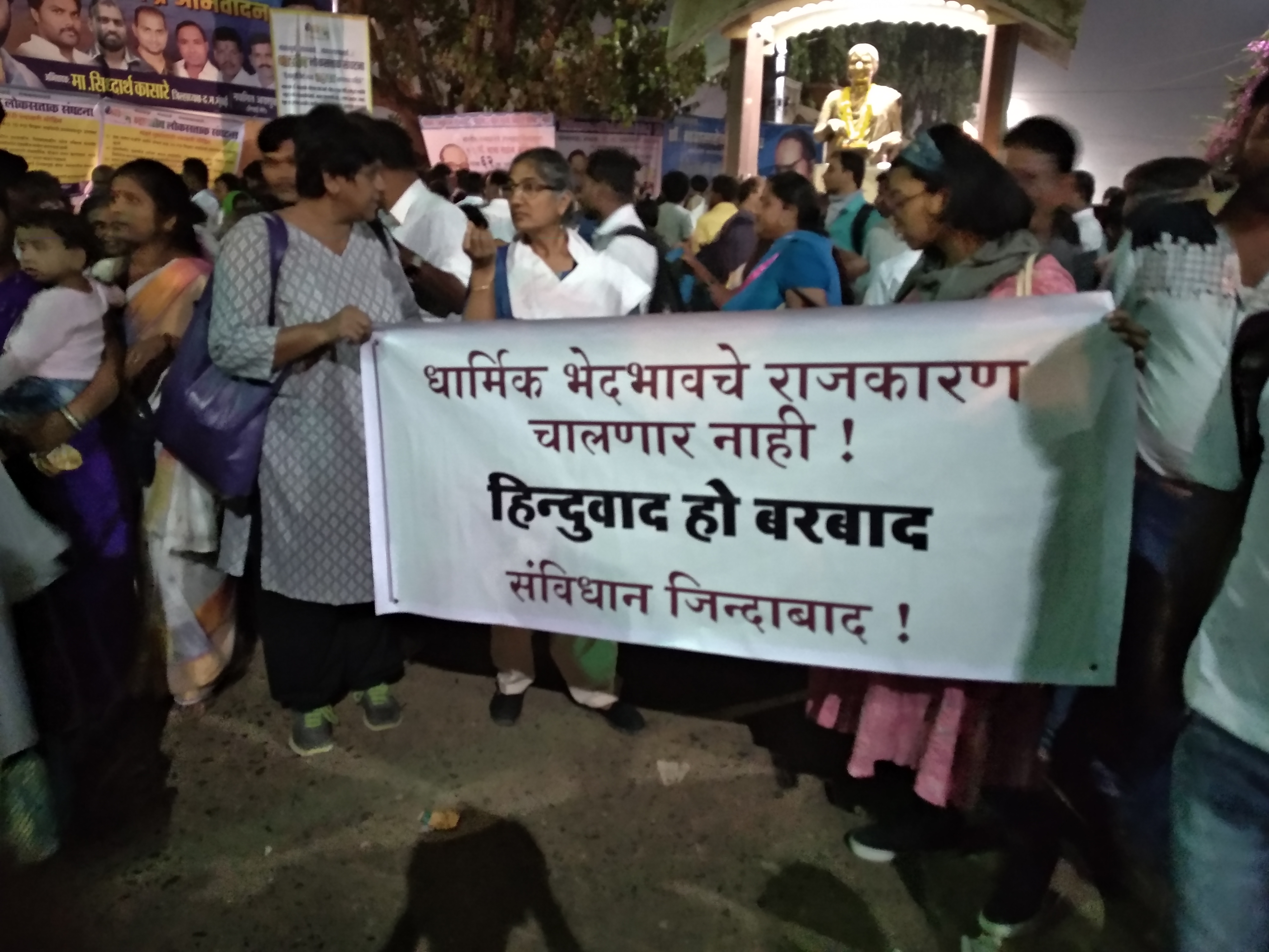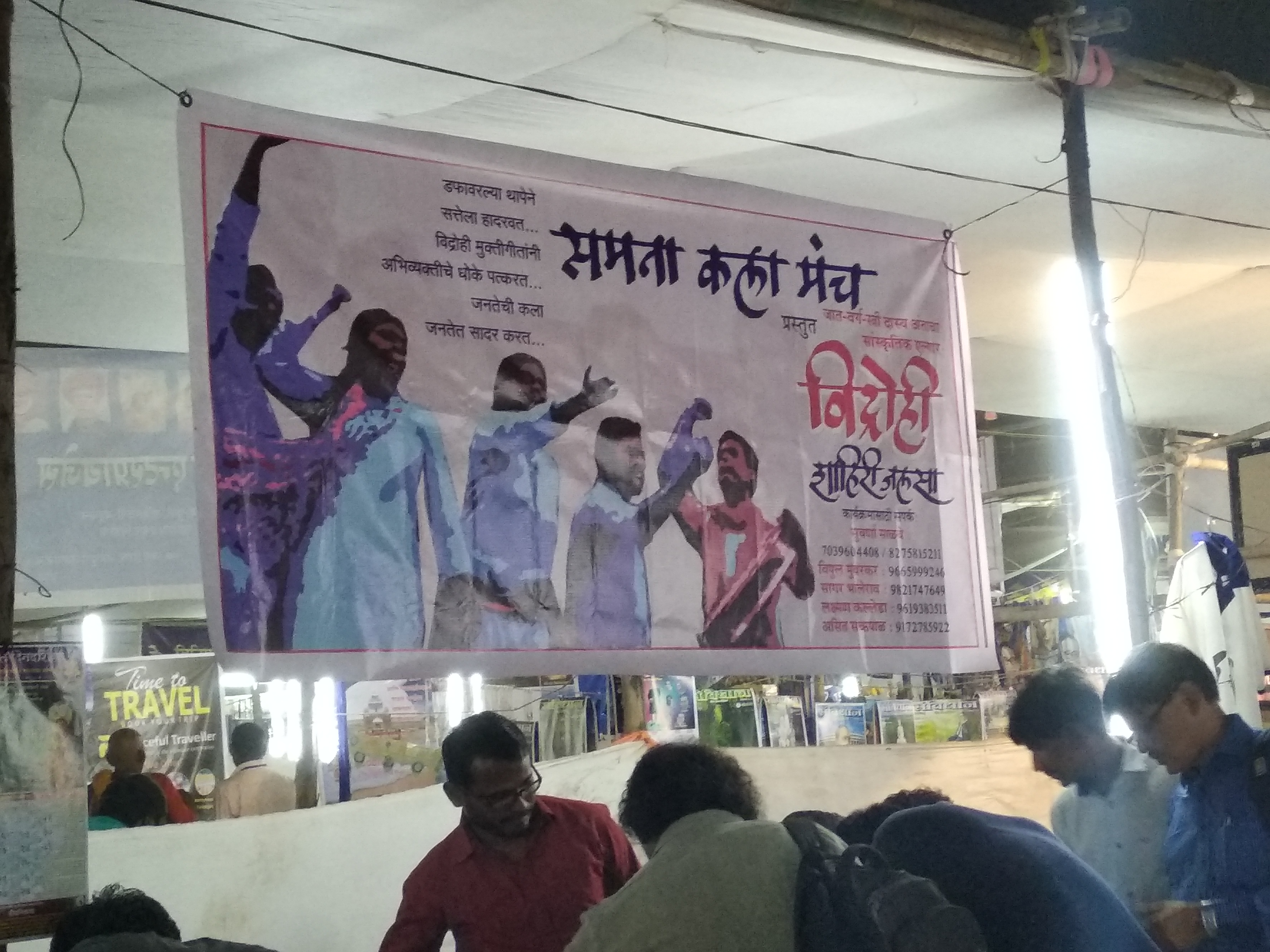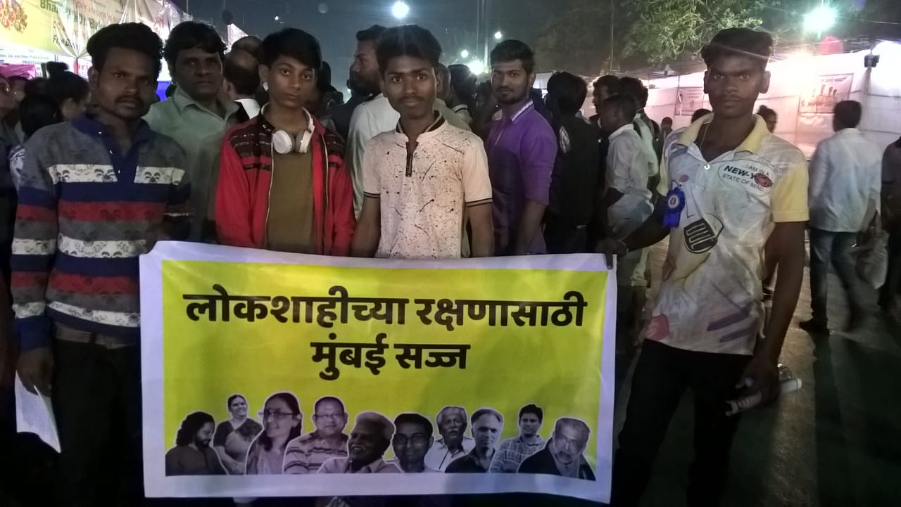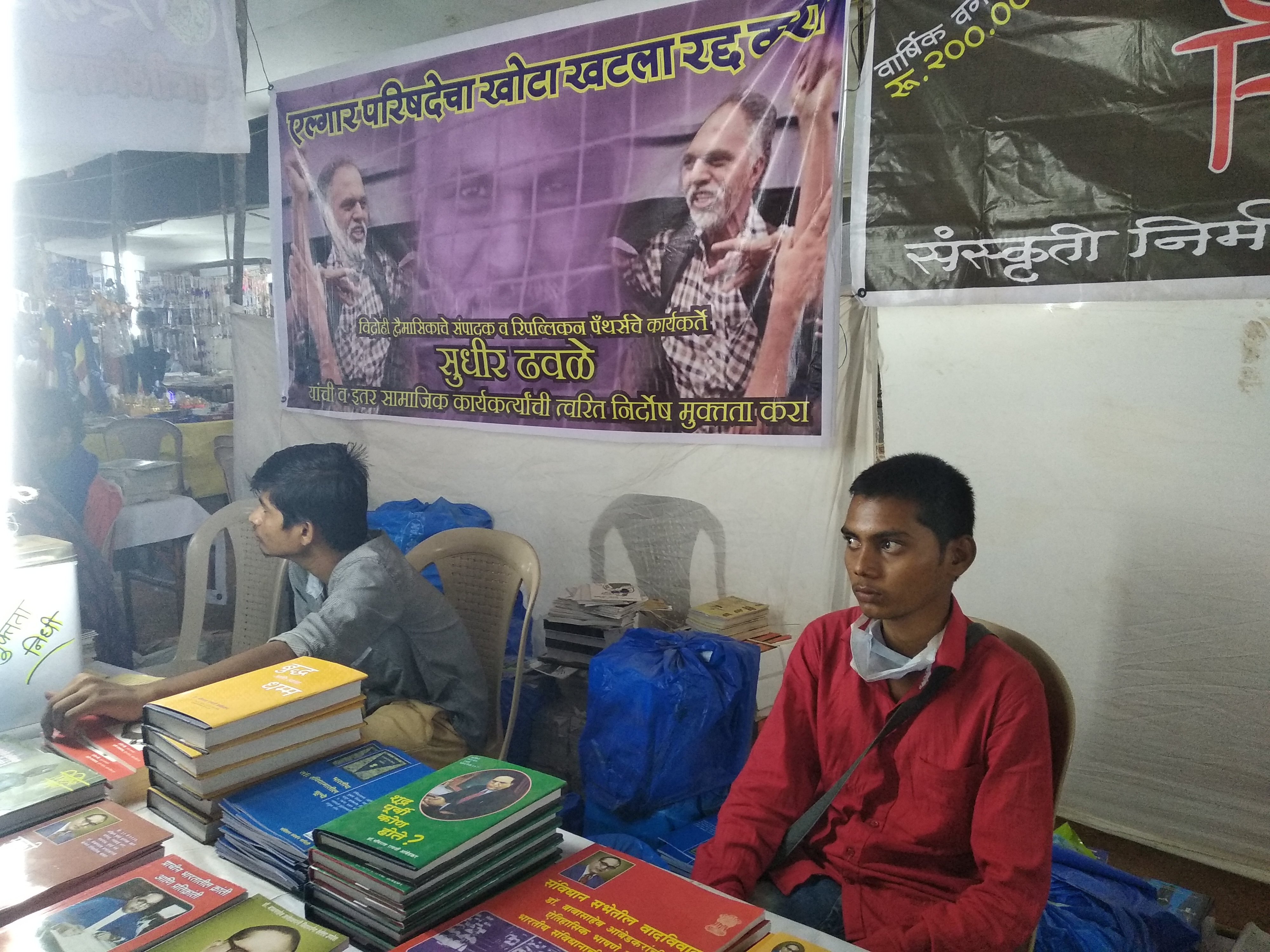 Several cultural organisations sang songs, gave speeches, conducted street plays and raised slogans of annihilation of caste, including Kabir Kala Manch and Samta Kala Manch – Maharashtra’s noted anti-caste lokshahiri movements. Hundreds of publishing outlets, political organisations and NGOs set up stalls criss crossing the grounds. Several doctors put up free medical clinics. Various groups were seen distributing food and water for the visitors. A few students and activists from Mumbai, organised as “Mumbai Rises to Save Democracy” performed songs and distributed pamphlets demanding release of political prisoners arrested in the context of Bhima Koregaon, arrest of Bhide and Ekbote, and repeal of draconian laws such as the Unlawful Activities Prevention Act under which most of these arrests are being done, bypassing Constitutional protection mechanisms. Bombay Suburban Electric Supply Union members had come in protest of the continued incarceration of several of their colleagues, which they claim is based on false grounds. Also present were the brother and comrades of Dalit Panther leader Bhagwat Jadhav, who was killed in the 1974 riots between the Shiv Sena and Dalit Panthers. Several banners demanding the release of Republican Panthers leader Sudhir Dhawale could be seen. Dhawale was one of the organisers of the Bhima Koregaon Elgar Parishad last year. He was arrested along with several other activists earlier this year and charged with the Unlawful Atrocities Prevention Act, on charges of inciting violence through the Elgar Parishad. He has since been in solitary confinement, although the police haven’t still been able to produce credible charges against him or any of the others arrested in the matter.