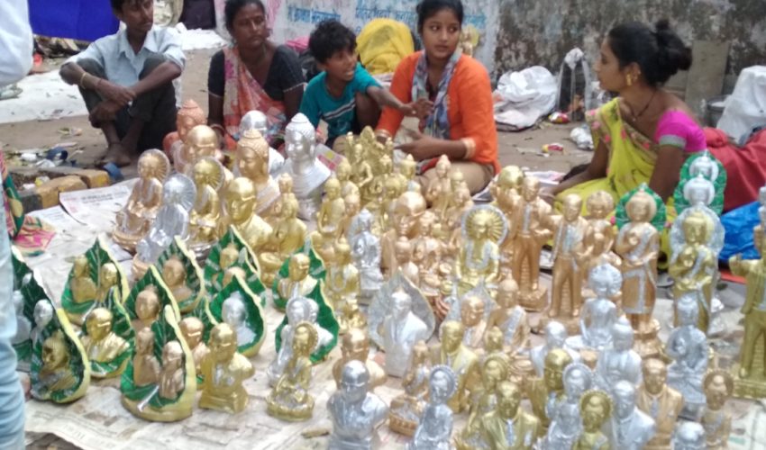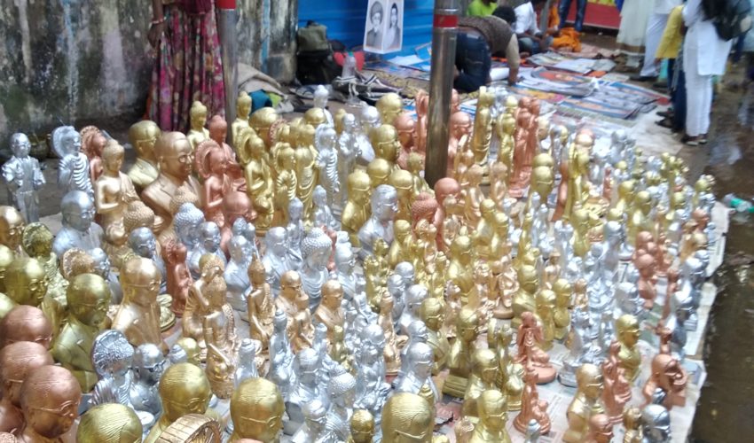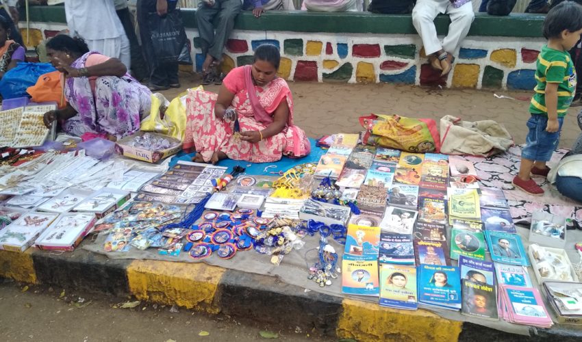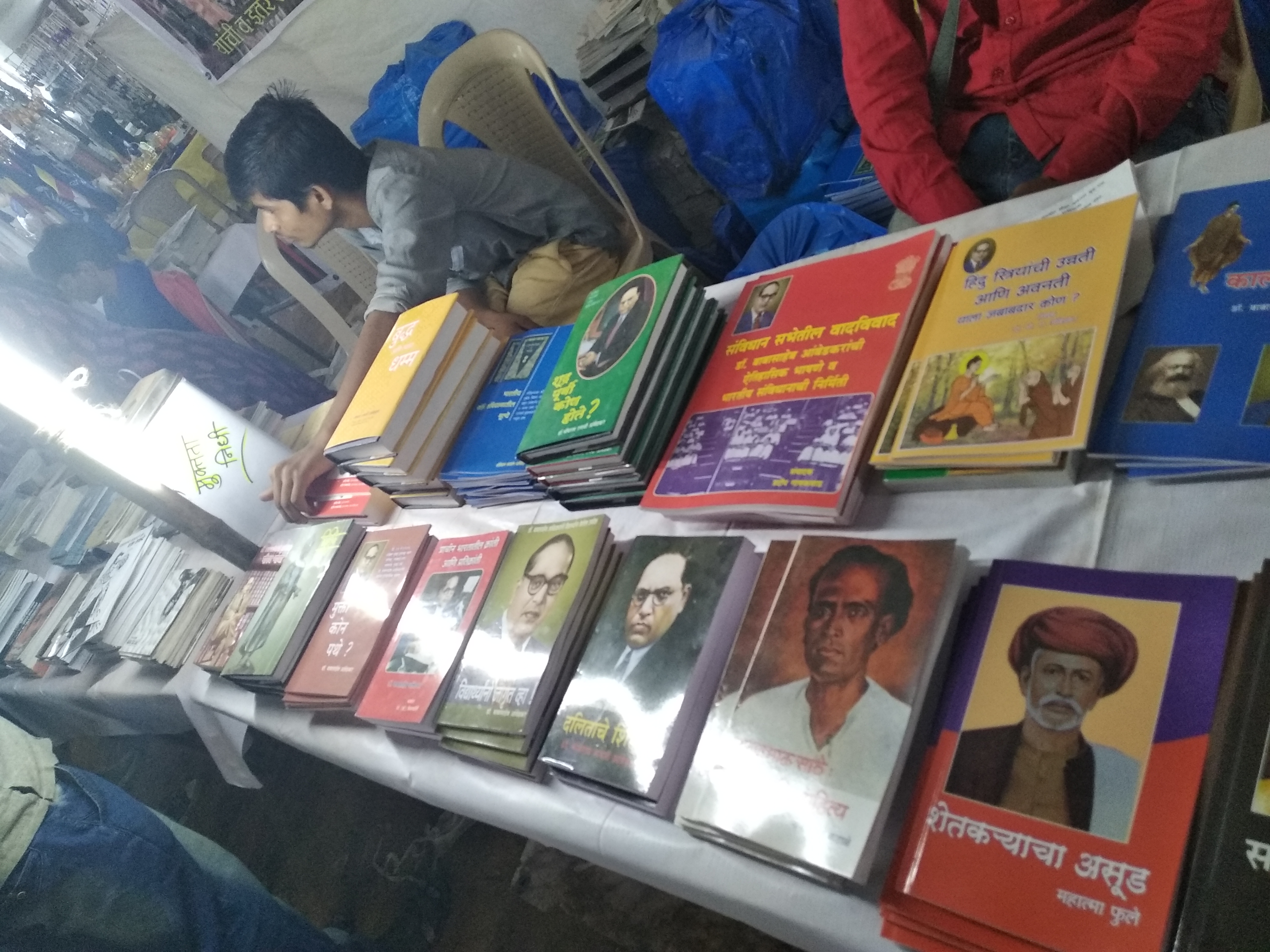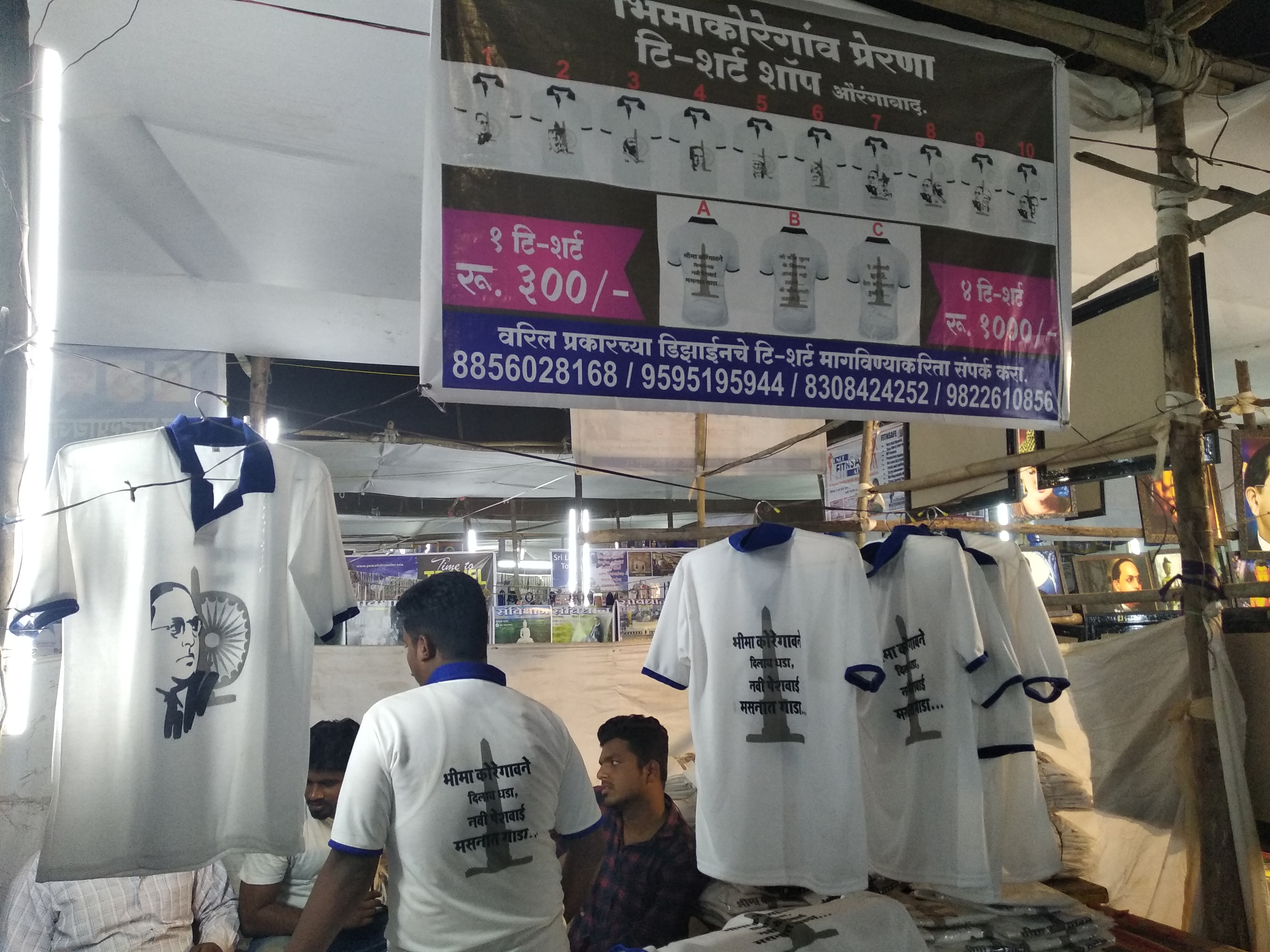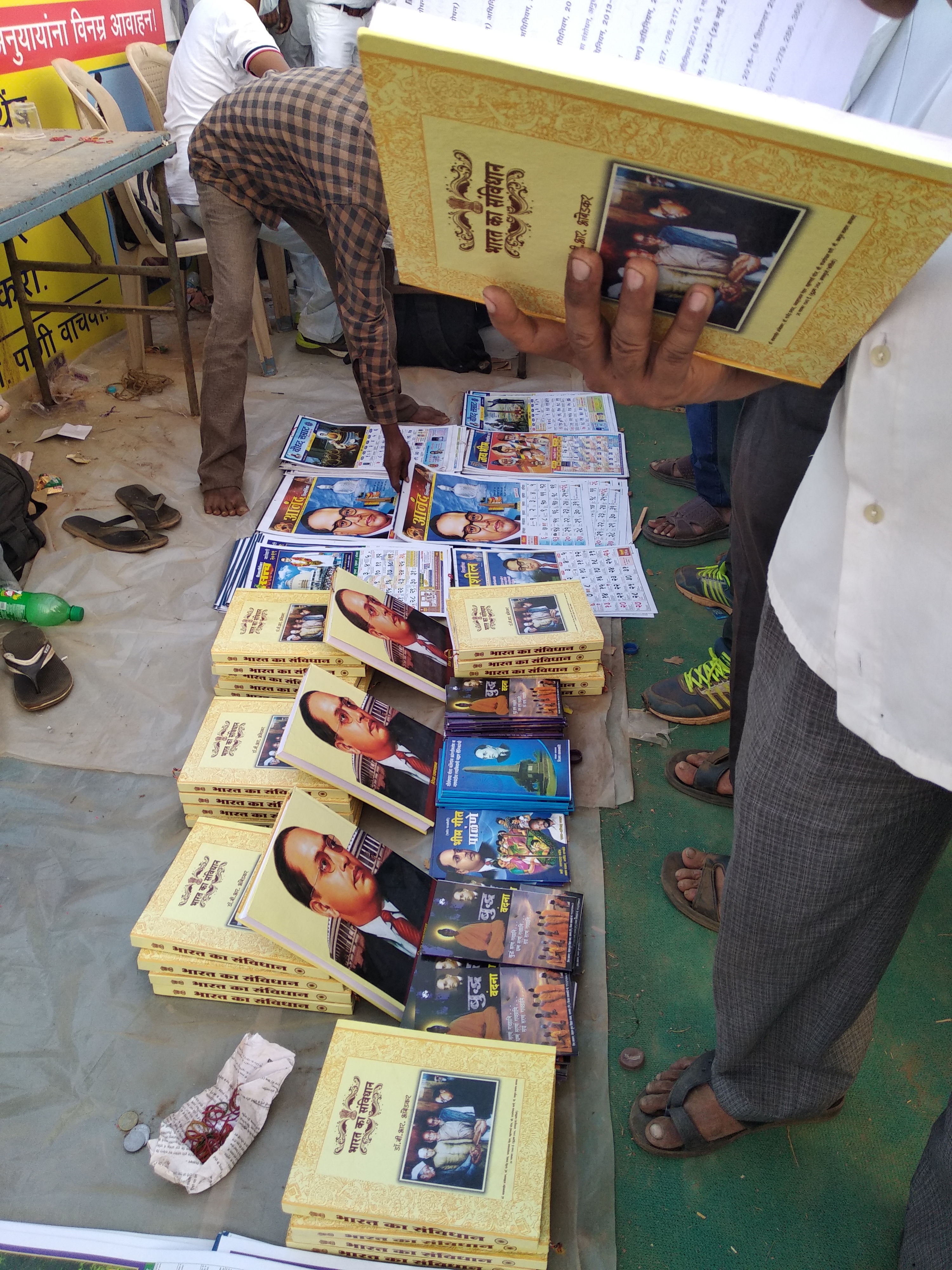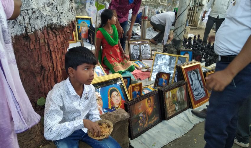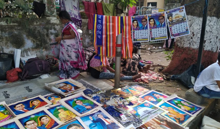 People came from all parts of the country – from UP, Bihar, Madhya Pradesh, Chhattisgarh, to Rajasthan, Gujarat, to Karnataka, Telangana, Andhra Pradesh. Street side makeshift stalls of books, flags, statues, idols, calendars, badges, etc came up on 5th itself. Thousands of people lined up their small merchandise along the streets. A common sight was the Constitution of India, volumes after volumes were getting sold in no time. “We come here every year for a little peace. We just want to see the place where he worked [referring to Ambedkar in Mumbai],” said a woman in her eighties, who had come with her family from Uttar Pradesh. One person from Ulhasnagar, one from Pune and another person from Akola mentioned that they were there when the attack on Bhima Koregaon visitors took place last year. All expressed indignation at the police doing nothing to stop the attacks. Instead the visitors were allegedly lathi charged. One person spoke about how the local shops had shut for business from beforehand, quite unlike earlier years which he claimed shows that the attack was pre-planned. Asked if they would visit Bhima Koregaon this year, they said yes. One of them claimed the crowd will be bigger this time since people don’t want to cower down before force.