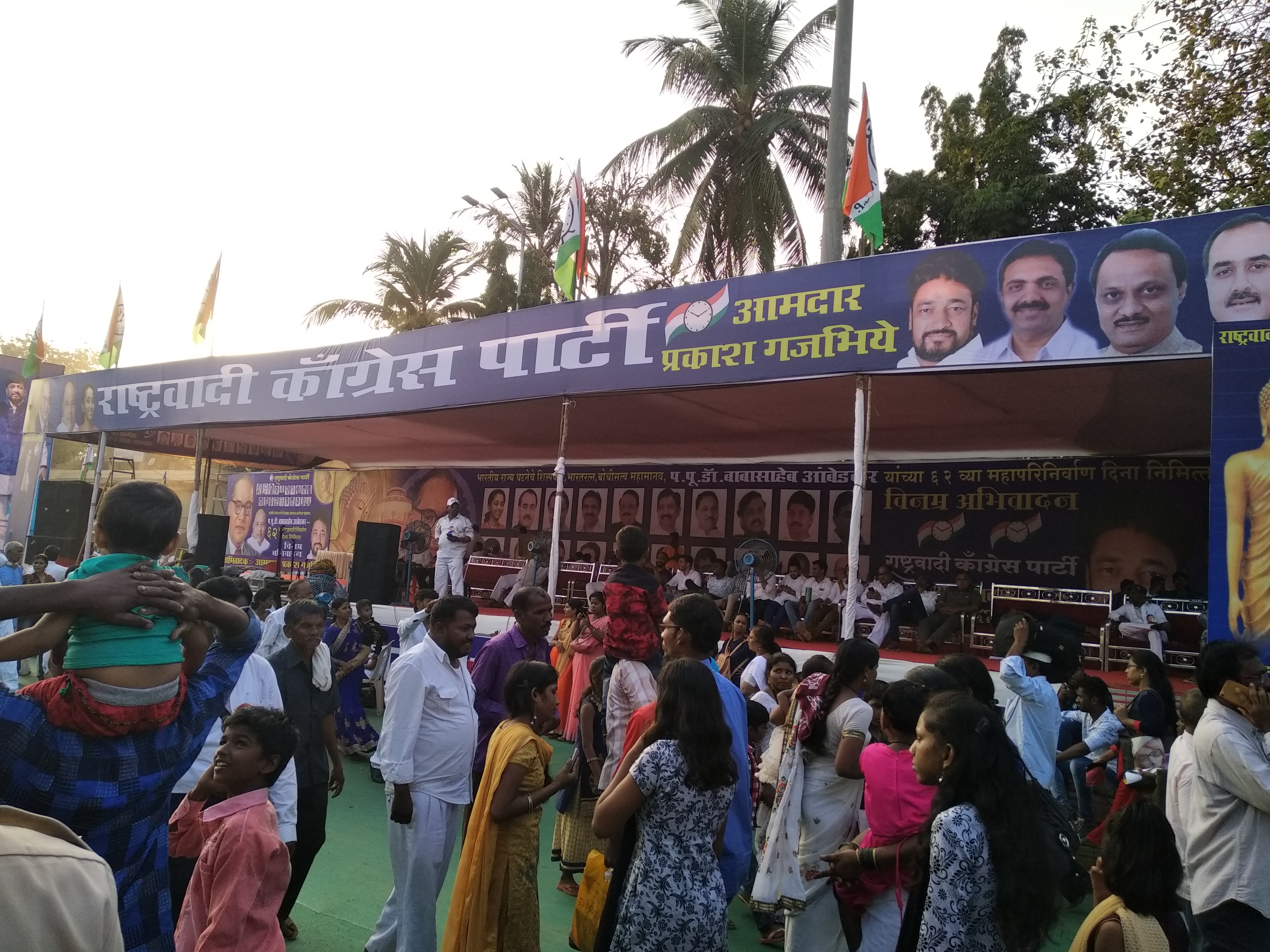 Several political parties had put up giant stages and big tents for their own leaders. The biggest presence clearly was that of the Republican Party of India (Athawale), a long-time ally of the BJP. Sharad Pawar’s Nationalist Congress Party (NCP) was also present. So was the Bahujan Samaj Party. Bhim Army Maharashtra also had a stall.
