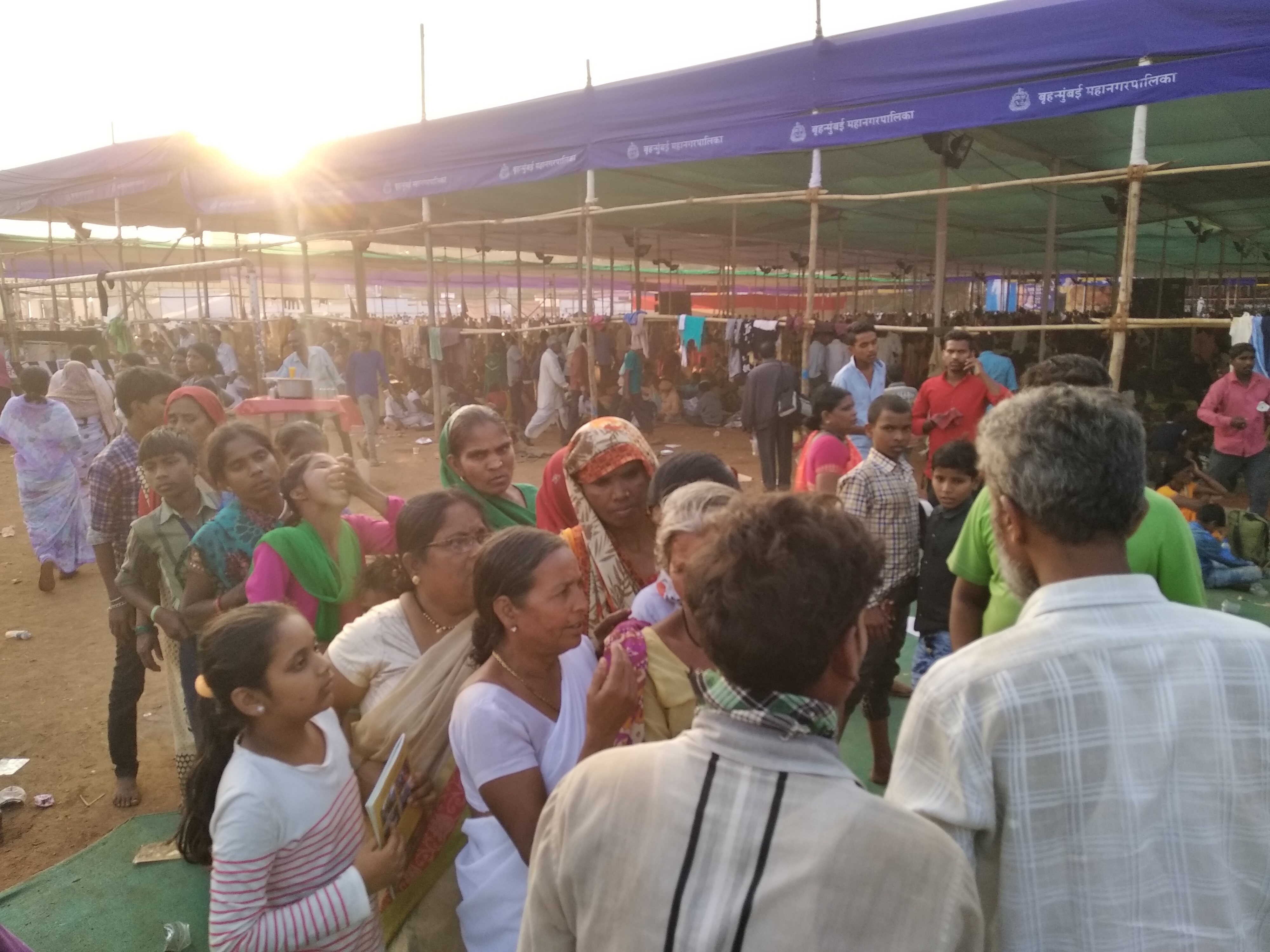 One middle-aged woman, Lalti Devi, comes every year from Uttar Pradesh, taking a 3-day long train journey, only for these couple of days in Chaityabhumi, till she catches her train back. “There are thousands like me who have been coming from faraway places every year for decades,” she said, going on to add, “There are many here today who had come here in 1956 from UP, when Babasaheb died.” In fact, significant parts of the grounds were covered with tents for non-Marathi speaking visitors. Lalti joined in one of the protest street meetings-cum-cultural performance, and then went on to address the entire crowd that had gathered there. She spoke in detail about the political situation in UP, and asked Dalit communities to vote unitedly against fundamentalist forces. She warned people of politics of co-option by upper castes, and of political betrayals within Dalit movements and parties. When asked if she thinks BSP can rebuild itself through the upcoming elections, she said “Only if they realise their blunders, and remove those that we all know are opportunists in the party”.