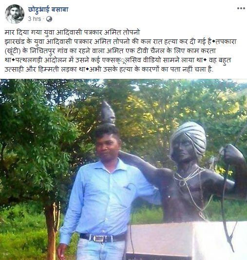 Adivasi journalist Amit Topno has been allegedly murdered in Jharkhand. He was missing since Saturday. A GroundXero report.