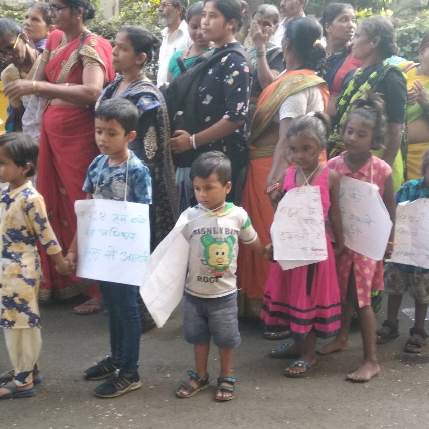 In 2009 the Bombay High Court ordered the forcible eviction and clearance of all hutments within 10 meters of the Tansa water pipeline – one of the major sources of water supply for the city of Mumbai, cutting through nine administrative wards. The reason cited then was these “illegal slums” are a threat to the security of the area. Later however, the authorities came up with a new plan: a $45 million, 24-mile cycling and jogging track along the length of the pipeline. On May 13 last year, nearly 1,000 houses near the Tansa water pipeline in Ghatkopar and Vidyavihar in Mumbai were razed to the ground by the Brihanmumbai Municipal Corporation (BMC). According to some estimates, the total number of households demolished along the entire stretch of the pipeline was around 20,000. The forcefully evicted residents were pushed into Slum Rehabilitation buildings located in the industrial area of Mahul, outside of the city. Mahul is one of the most toxic and polluted areas in the country, and has been described by people as “Mumbai’s Toxic Hell”. In contravention with not only Court orders and Supreme Court guidelines, but also with the UN standards for ‘adequate housing’, these people were exposed to the highly fatal chemically polluted water and air of Mahul, far away from where they had been living for decades. Demanding proper rehabilitation, the Mahul residents have been camping on the footpath opposite to their demolished basti site, in VidyaVihar, for the last 45 days.