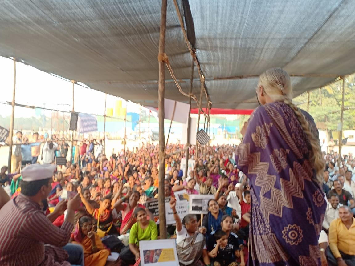 Other organisations like the Bharatiya Seva Naka Kaamgaar that organises toll workers in Thane, Raigadh and Mumbai, also extended their solidarity to the protesting Mahul residents. Among the other organisations present were Mahila Atyachar Virodhi Sangh and Kashtakari Sangathana. The Delhi AAP Government Health Minister also visited the maidan on the 15th, in support of the rally. One activist from the Ambujwadi anti-demolition movement demanded property rights for slum residents. “We don’t want your development model. We don’t want your slum rehabilitation (SRA) model. Zameen humaare naam pe kar do. Uspe apna ghar hum khud bana lenge [Give us the rights to our land. We will make our own houses there],” he said.