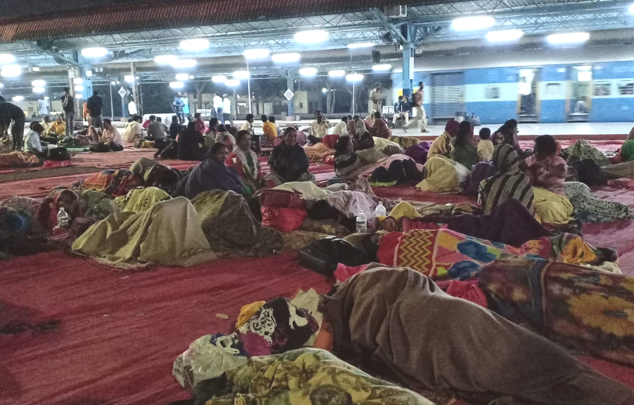 Till the time of filing this report, the sit in continues. Wada-pavs are being distributed as dinner, and khichdi as lunch, as people including small children and old people are shivering through the nights out in the open. Washrooms in the maidan are of no use because of unavailability of water. The nights are icy, and more than 4 people have had to be hopitalized because of the cold. On 16th evening, police made the protestors spend the night in the nearby Chhatrapati Shivaji Terminus Station, citing that rallies were not allowed in the Maidan beyond 8 pm. Around 10 pm, after the negotiations with the police failed, people had to leave the ground and spend the night on Platform No. 18 of CST. Khichdi was served for dinner. There were only 2 washrooms available in the station, and by the next morning the water supply for those washrooms was also stopped.