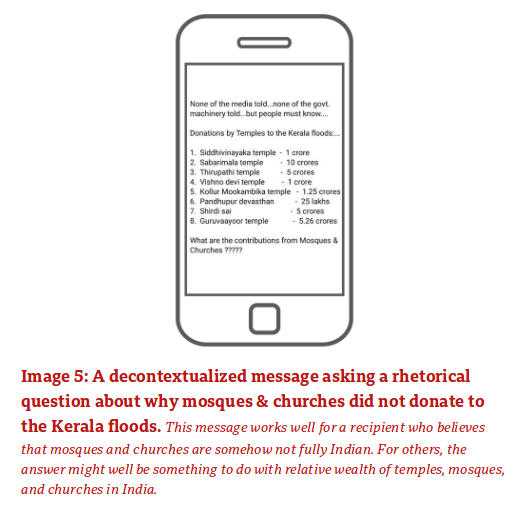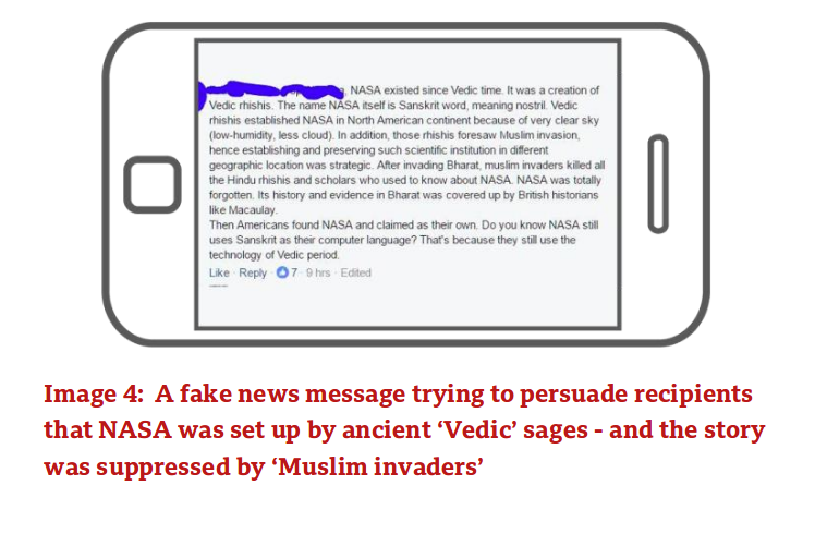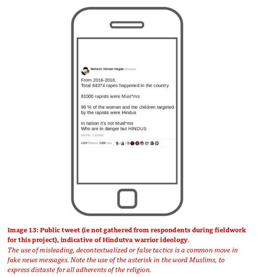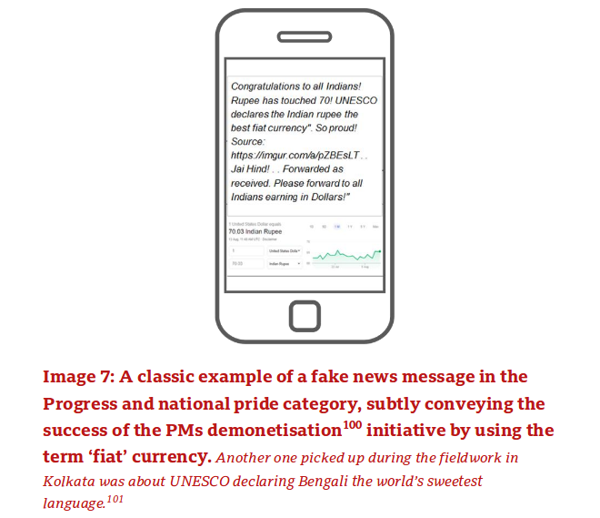 “Nationalism a driving force behind fake news in India,” concluded a BBC study published this November. “Four types of narratives in fake news messages are particularly effective at passing by the critical filters of a wide swathe of the citizenry. These are: Hindu power and superiority, Preservation and revival, Progress and national pride, Personality and prowess (of PM Modi),” listed the report.