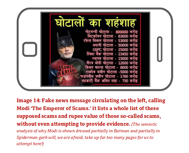 “(But) those who make [fake messages for mass forwarding], those who design the graphics know that they are fake. These messages are then sent to 500 WhatsApp groups, the people in those groups think these are real…and they spread them as they want to spread the message, not because they want to spread fake news,” said Shivam Shankar Singh in an interview. Shivam, one of the BJP’s campaigns consultants, resigned from the party this June. “If the BJP had to pay someone ₹20,000-30,000 for social media work it was an informal arrangement. But if someone has to get a monthly salary of ₹1.5-2 lakh, there’s no other way for the party but to do it formally, which is then done by recruiting the person into any of the allied think-tanks,” Shivam was quoted as saying. Officially, Shivam was on the payrolls of election strategist Prashant Kishor’s company IPAC, which had the contract for political consultancy for BJP.
