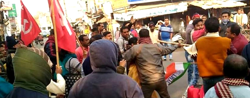 When it comes to attack on the working class, all mainstream parties are on the same boat. Be it the saffron-coloured BJP in Maharashtra, the green-coloured Trinamool Congress in West Bengal or the tri-coloured Congress in Rajasthan, all of them are equally brutal and repressive when it comes to the workers’ struggles against capital and their right to unionise. A Groundxero report on brutal attacks on the nationwide workers’ strike on 8th and 9th January.