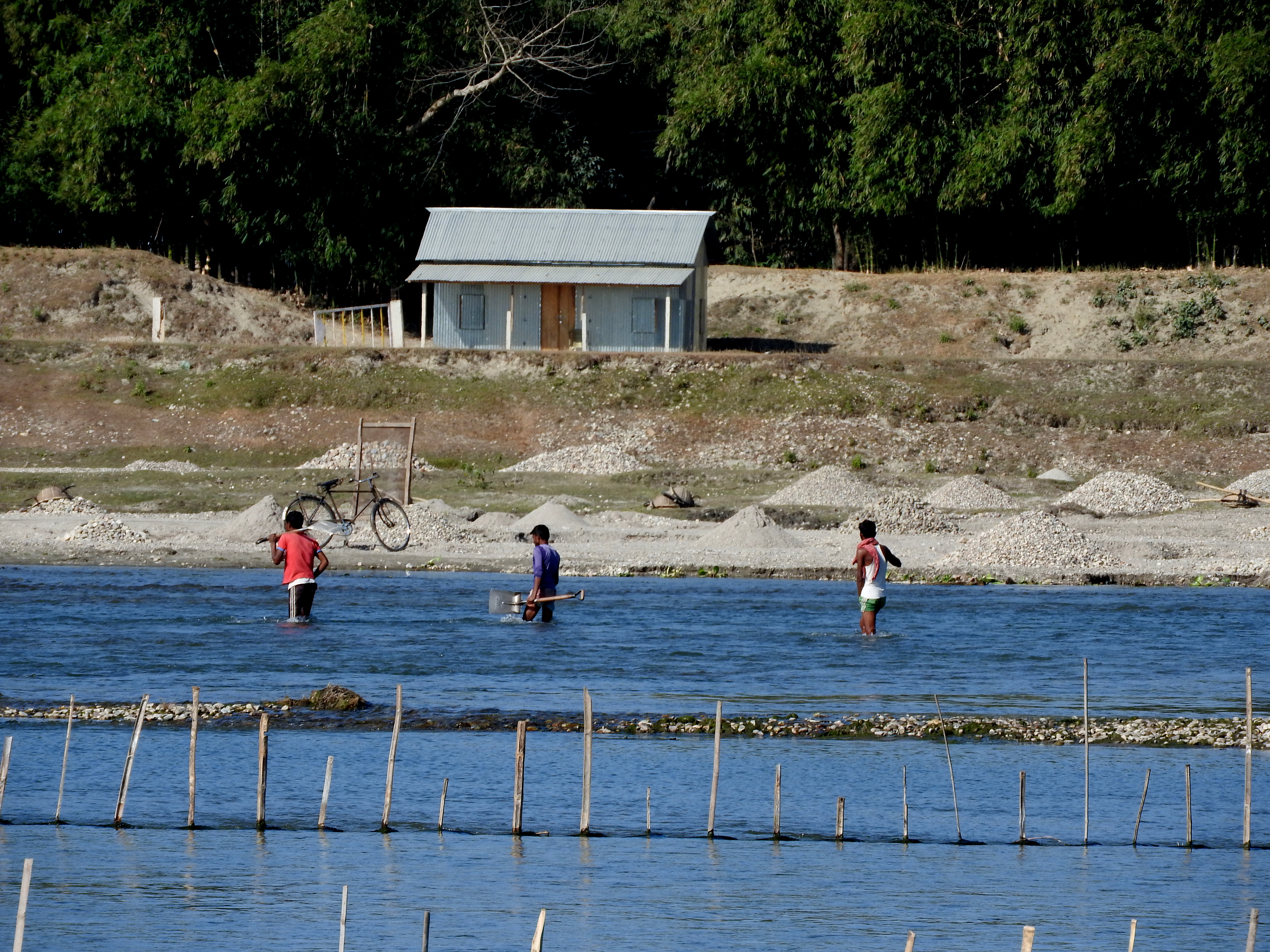 কিন্তু পৃথিবী তার তথাকথিত সভ্যতার সাথে, বাঁচার নিয়ম বদলায়। এই তথাকথিত সভ্যতার প্রতিদানে প্রতিদিন খুন হয় জীবন, দূষিত হয় মাটি, চুরি হয় পাহাড়, শুকিয়ে যায় নদী, আর সাফ হয় বন-জঙ্গল। ঠিক এমনভাবেই পাহাড়ি ঘন নীল পানির নদীটার তীরে বেঁচে থাকা আর বাঁচিয়ে রাখার স্বপ্ন ভেঙ্গে যায়, যখন দেখি রায়ডাকের দেহ খুবলে তোলা বালি পাথর বোঝাই অসংখ্য গাড়িগুলো সারিবদ্ধ হয়ে চলছে। বিকট যান্ত্রিক শব্দে নদীর সাথে কথোপকথন বন্ধ হয়ে গেলে দেখি, নদীর বুক ক্রমশ শুকিয়ে যাচ্ছে; সে বুকে কোদাল-ফাওড়া নিয়ে আবছা যে শ্রমিকদল দিনভোর মালিকের ট্রাক বোঝায়ের জন্য বালি পাথর খুবলে তুলছে, খোঁজ নিয়ে জানলাম সেই আবছা শ্রমিকের দল আসে ‘সুরমা নদীর তীর’ থেকে ভরপেট দুবেলা অন্নের সন্ধানে সারাদিন নদী খুঁড়ে শহর সভ্যতা নির্মাণ করে যায় তারা, দেশে দুঃখ হলে চা বাগানে কাজ খুঁজতে মিনিরা আর আসামে আসে না, বরং চা বাগানের সস্তা শ্রমমুল্যে ক্ষুধার্ত পেটগুলো আসাম ছেড়ে দেশের চারিদিকে সস্তা শ্রমের কাজ খুঁজে নিচ্ছে। এভাবেই সুরমা নদীর মানুষরা আসে রায়ডাকের পাথর খুঁড়ে ট্রাক বোঝাই করতে।