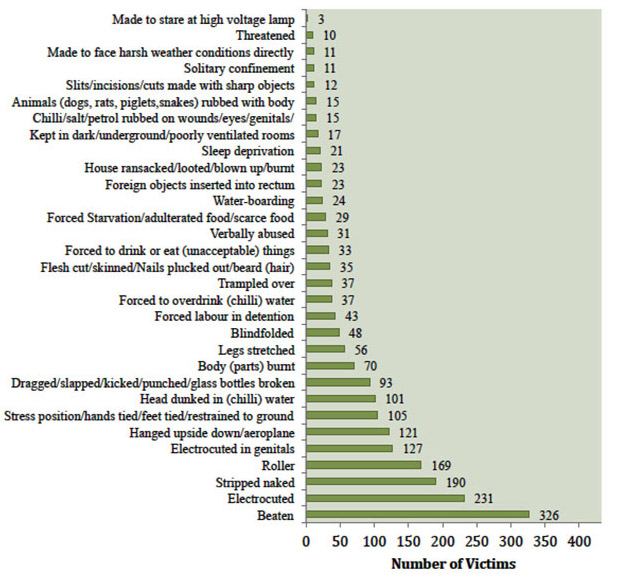Figure 2: Number of people out of 432 subjected to different forms of torture