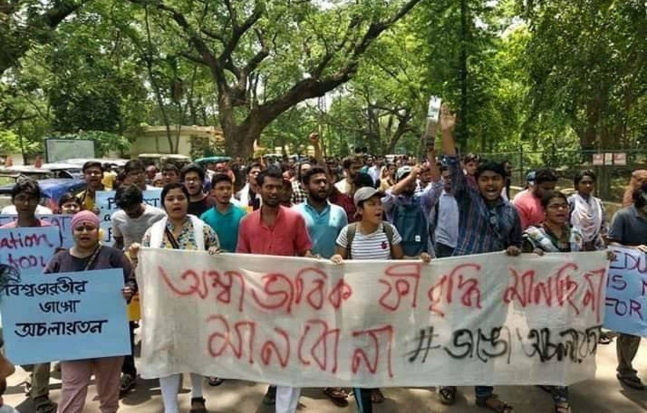 গোটা ভারতবর্ষ জুড়েই সাধারণ শিক্ষার্থীদের থেকে উচ্চশিক্ষার অধিকার কেড়ে নেওয়া এবং শিক্ষার বেসরকারিকরণের যে প্রথা চালু হয়েছে তার প্রকোপ এসে পড়েছে বিশ্বভারতী বিশ্ববিদ্যালয়েও। ধীরে ধীরে অচলায়তন হয়ে উঠতে থাকা এই বিশ্ববিদ্যালয়ের সাধারণ শিক্ষার্থীরা তা মেনে নিতে নারাজ। সেমেস্টার চলাকালীনও তাই তারা শিক্ষার অধিকার সুরক্ষিত করতে আন্দোলনে নেমেছে। এই আন্দোলনের কথা লিখেছেন বিশ্বভারতীর আন্দোলনরত শিক্ষার্থীরা।