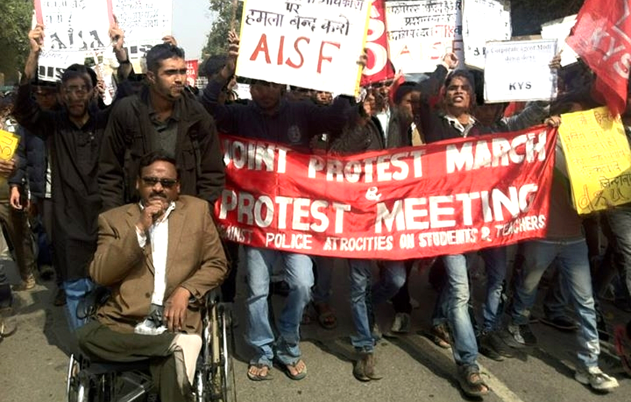 Saibaba had extensively campaigned against the Salwa Judum (a state sponsored private militia in Chhattisgarh) and the human rights violations that accompanied Operation Green Hunt against Adivasis in Central India launched by the UPA Government. “Apart from being 90% disabled, Saibaba is also suffering from at least 19 other serious health related issues which require immediate specialized and comprehensive medical treatment,” said his wife Vasantha. “There has been no treatment given to my major ailments at the Govt. civil hospital. The doctors there spent the past two years in medical investigations without concluding ever [sic]. In addition to my pain and suffering due to the severe ailments, psychologically I have been under great stress due to these circumstances. My disability has started playing heavily on me,” Sai wrote in his latest letter.
