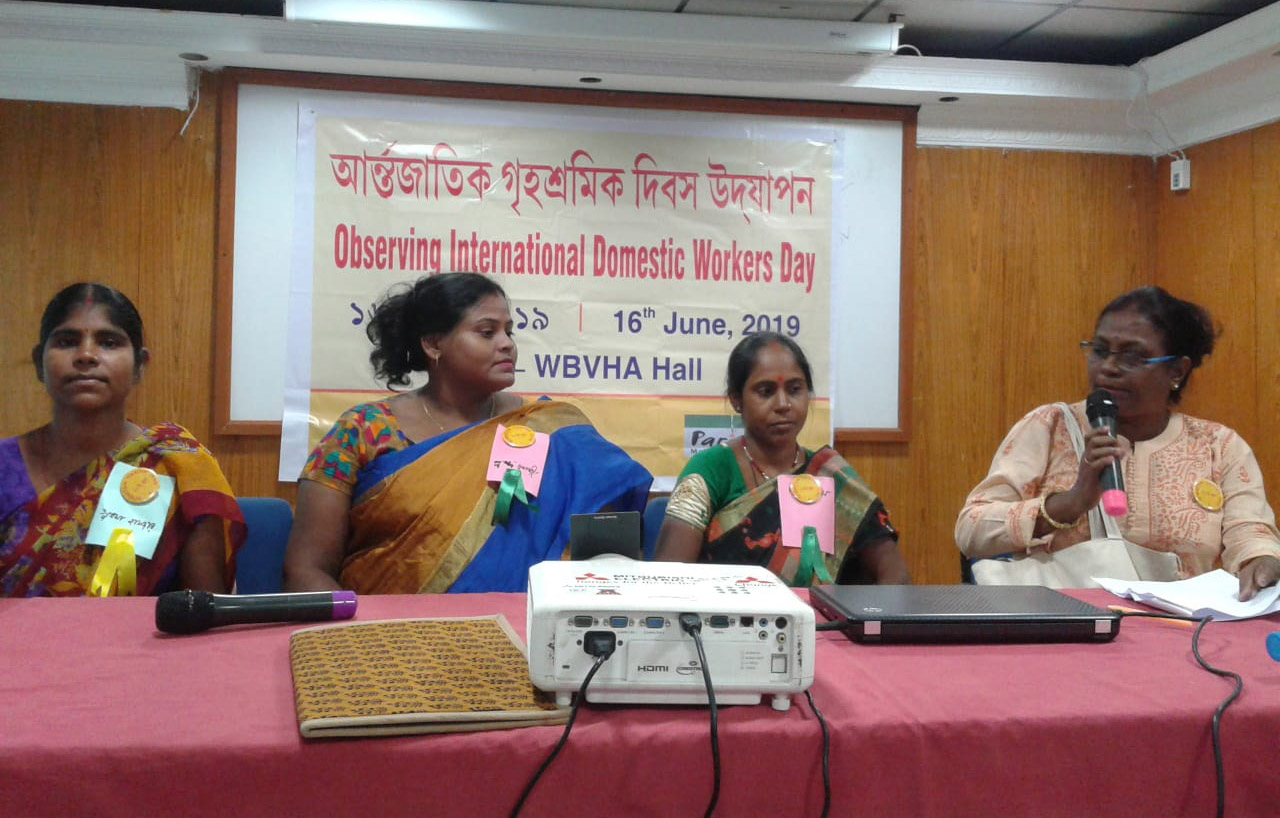 পশ্চিমবঙ্গে কলকাতা ও সংলগ্ন এলাকায় দীর্ঘদিন ধরে গৃহশ্রমিকদের অধিকার নিয়ে কাজ করছে ‘পরিচিতি’। এই দিনটি উপলক্ষ্যে আয়োজিত তাদের অনুষ্ঠানে উপস্থিত ছিলেন ‘পরিচিতি’র বিভিন্ন এলাকায় গড়ে তোলা গৃহশ্রমিকদের সমাধান দলের সদস্যরা ও তাদের সঙ্গে কাজ করা ভলেন্টিয়ার-রাও। তেমনি একজন টুম্পা মান্না জানালেন, গৃহশ্রমিকদের নিয়ে কাজ করতে গিয়ে দেখেছেন সবচেয়ে বেশি বাধা আসে নিয়োগকারীদের কাছ থেকেই। তারাই এদের জোট বাঁধতে বাধা দেন, বলেন এধরনের উদ্যোগে যুক্ত না হতে। তবে এটাও ঠিক এ ধরনের দীর্ঘ আন্দোলনের ফলেই অন্তত ছুটির ক্ষেত্রে কিছুটা হলেও বদল আনা সম্ভব হয়েছে।