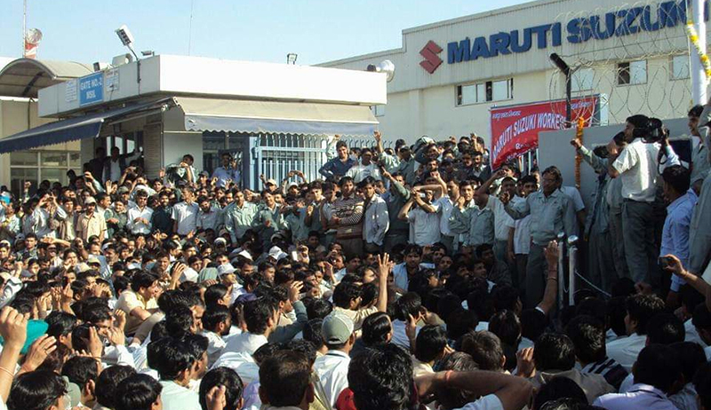 18th March 2017 was a black day in the chronicle of Maruti workers’ movement. While 117 out of the 150 arrested permanent and contract workers were acquitted by Additional District and Sessions Judge R. K. Goyal, 30 workers are still languishing in jail for various durations. 13 other workers, who were amongst the leading faces of the movement, had been sentenced for life. These 150 workers were arrested under various charges like conspiracy, vandalism and rioting in the Manesar plant of Maruti. They also faced charges of attempt to murder, and the murder of GM Awanish Kumar Dev, HR Maruti Manesar plant, on 18th July 2012. Other than the 150 workers, 63 more workers, still have non-bailable warrants in their names.